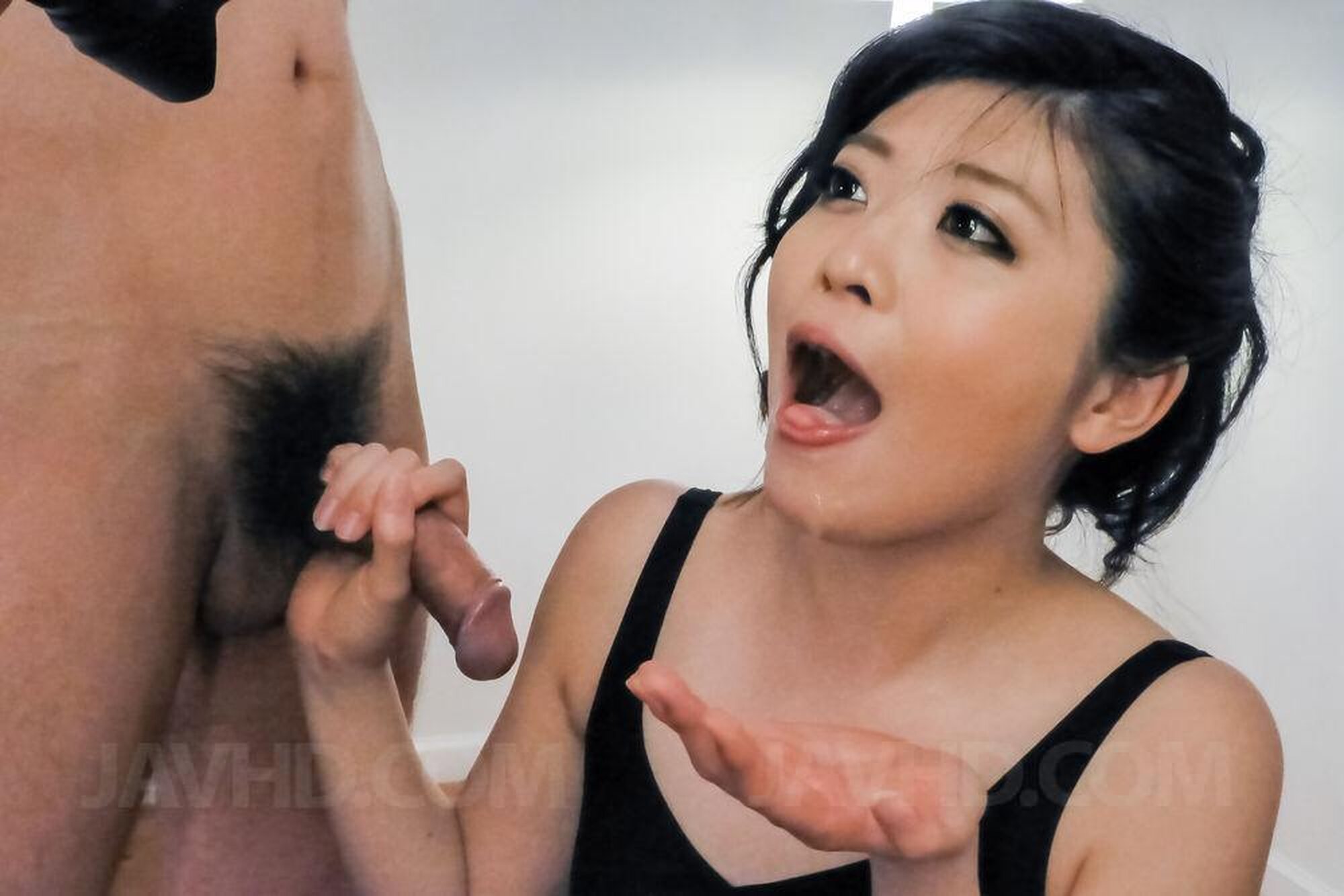 Ryoko Murakami Asian strokes boner and shows tongue with cum