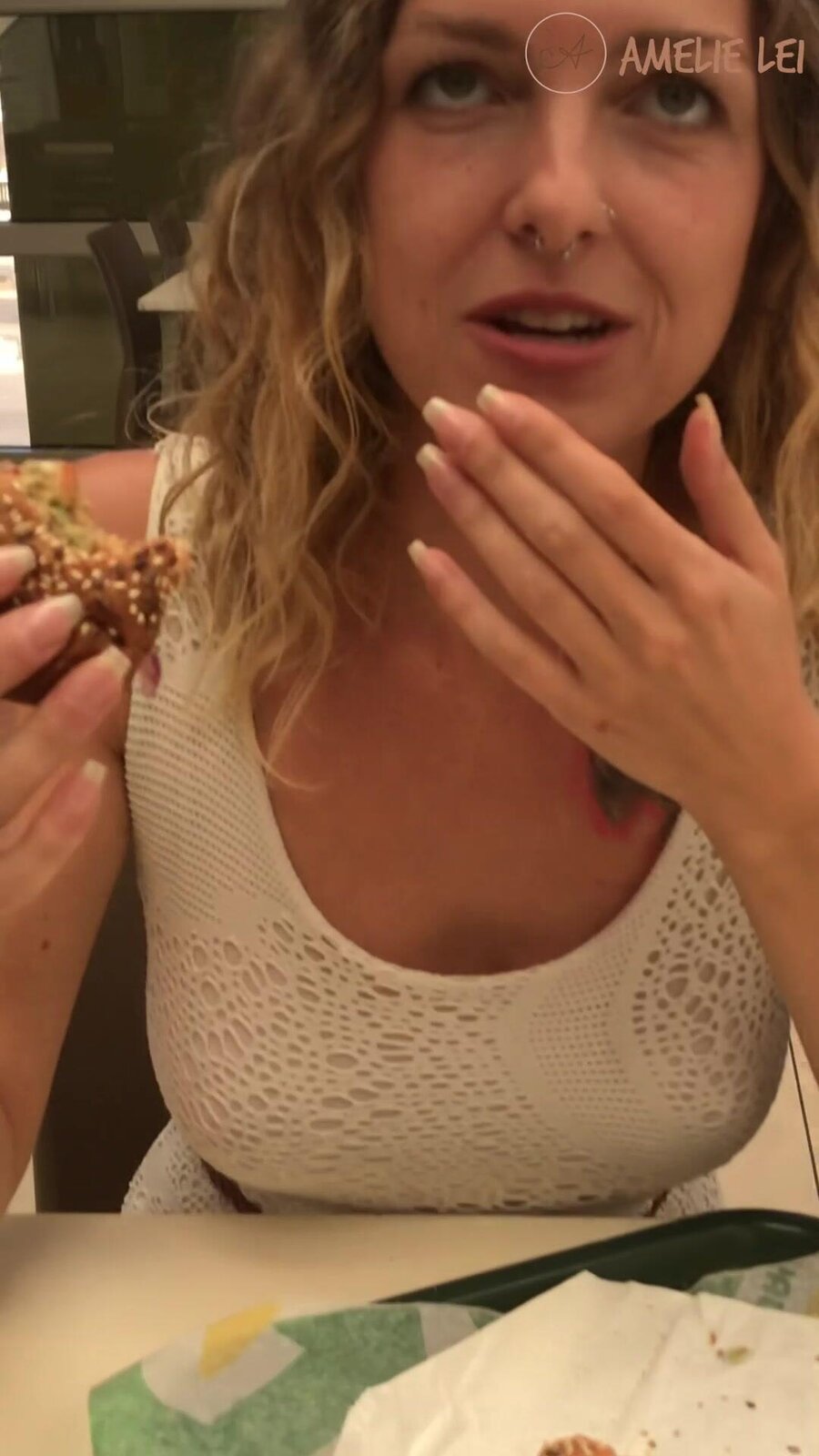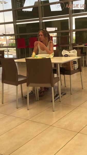 After shopping and after masturbating in the locker room, I'm hungry. I'll get a sandwich and sit down. Suddenly someone comes running up to me, already with a cell phone in hand ... am I Amelie? He would be such a big fan and asks if I would be interested in fucking him. Haha, I don't fuck with everyone and not with him either, but I'd like to have a blowjob as my dessert. I just finish my sandwich and then I take him to a disabled toilet so that we have a little more space :P Well, I'm excited to see what pops in my face and, above all, splashes in my face :D