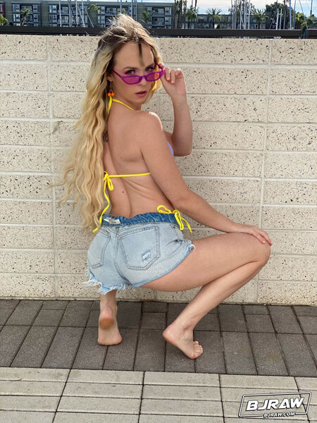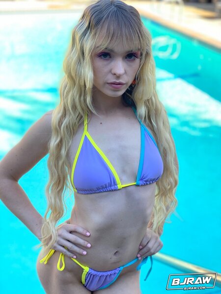 It was such a perfect day out and no one was at the pool. I headed down and too late. There was a tall, gorgeous blonde already there. Wow, was she hot! I had to talk to her to find out what she likes to do. I found out she likes to hike. I also found out later, she loves to suck cock!