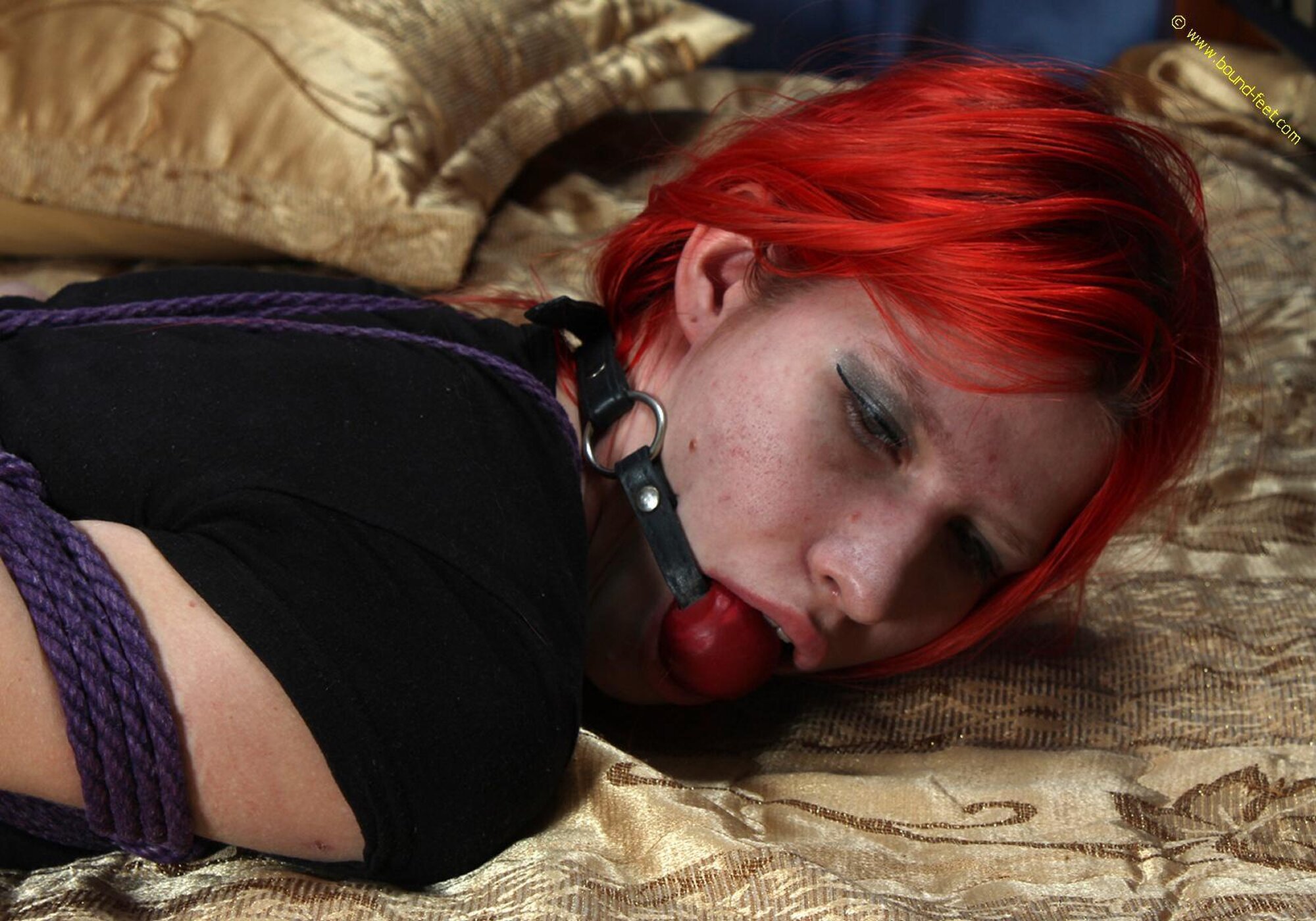 Aily hogtied on bed