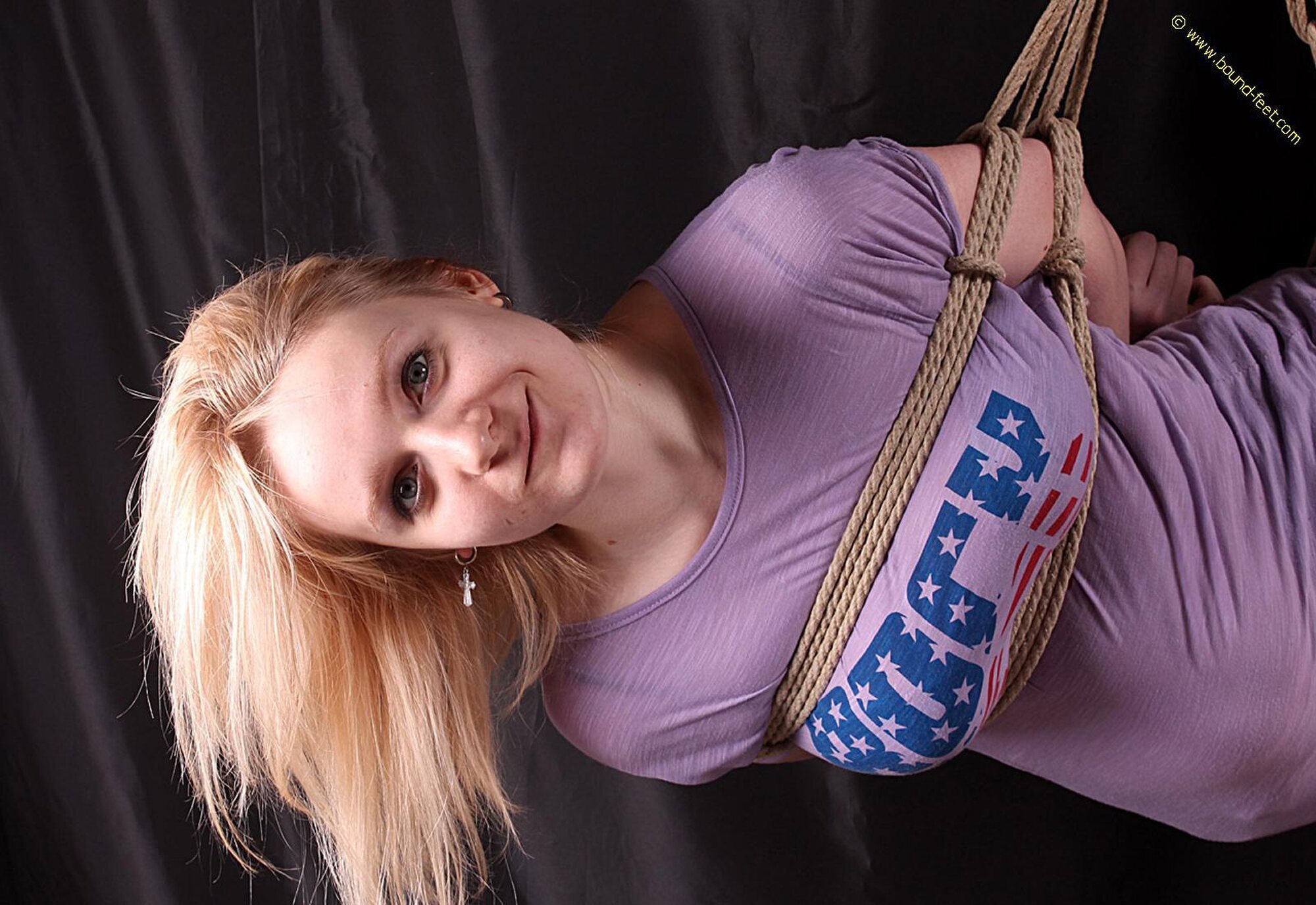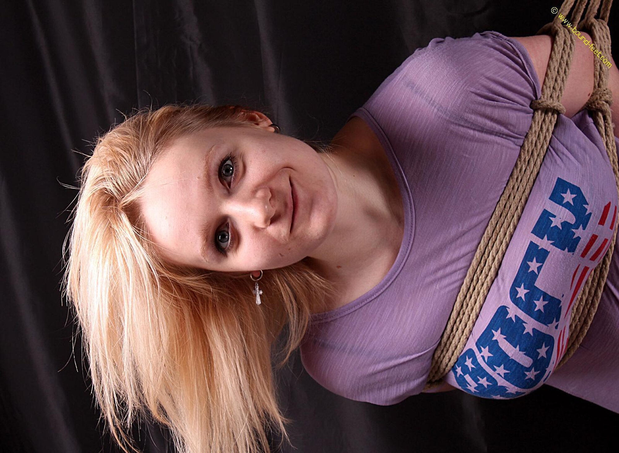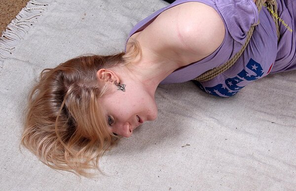 Aily hogtied on bed