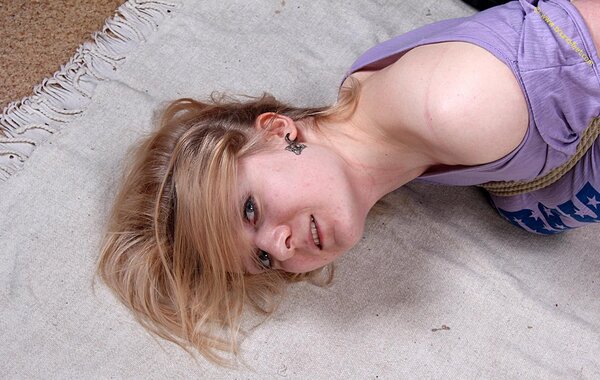 Charlotte hogtied on bed