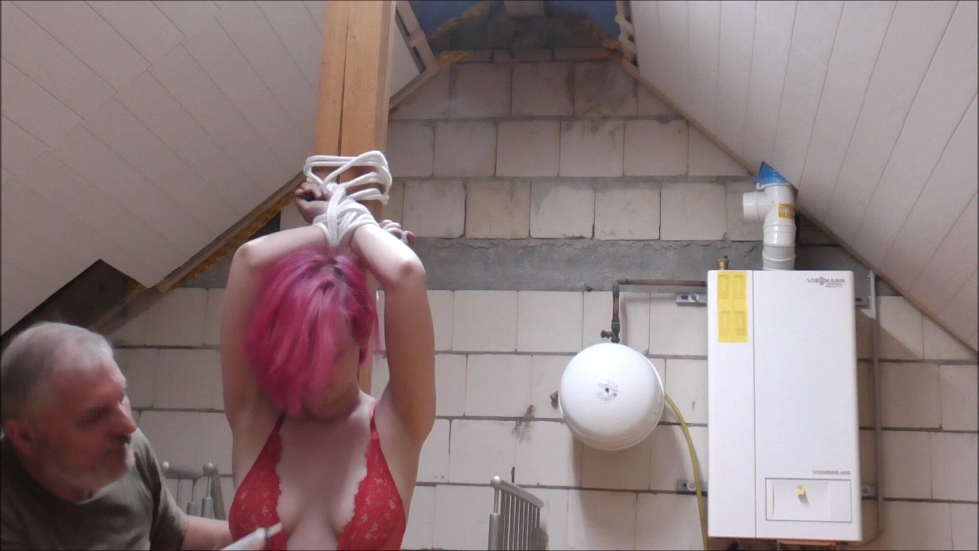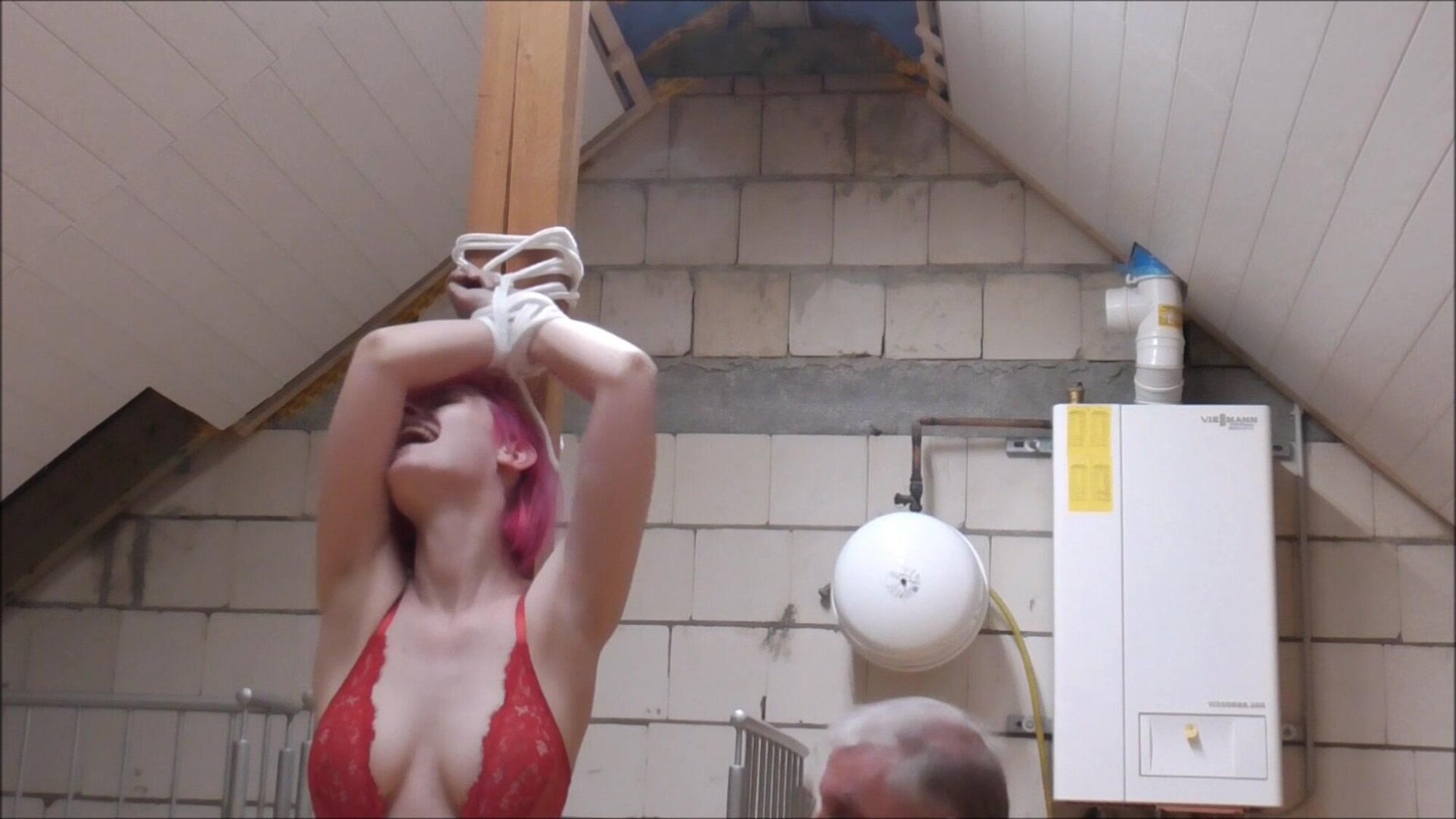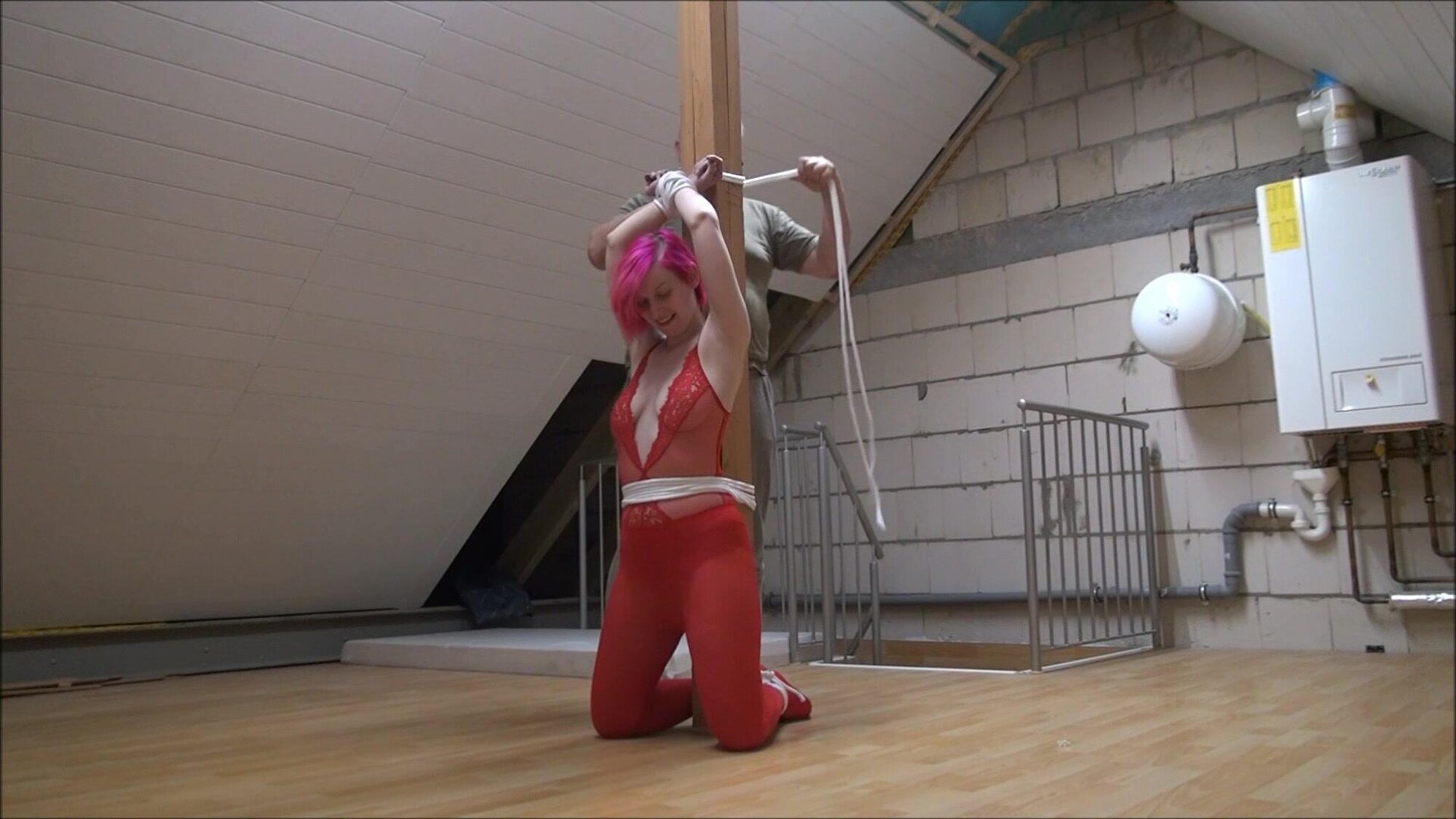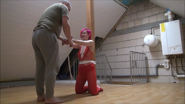 Stefanie wants to be tied up by Mike in a special way. He then tickles her.