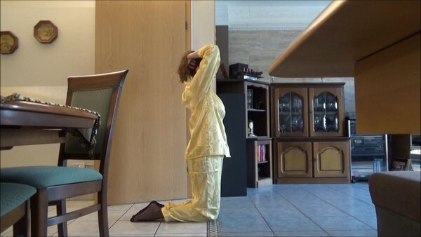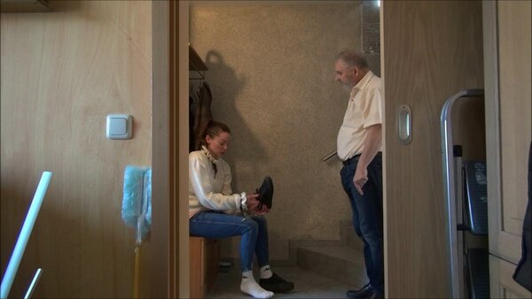 Tatjana got into debt. As an alternative to imprisonment, she has the choice to take part in a training course. This is training to become a household help under difficult conditions. Tatjana has to do her tasks tied up and pass a tickle test.