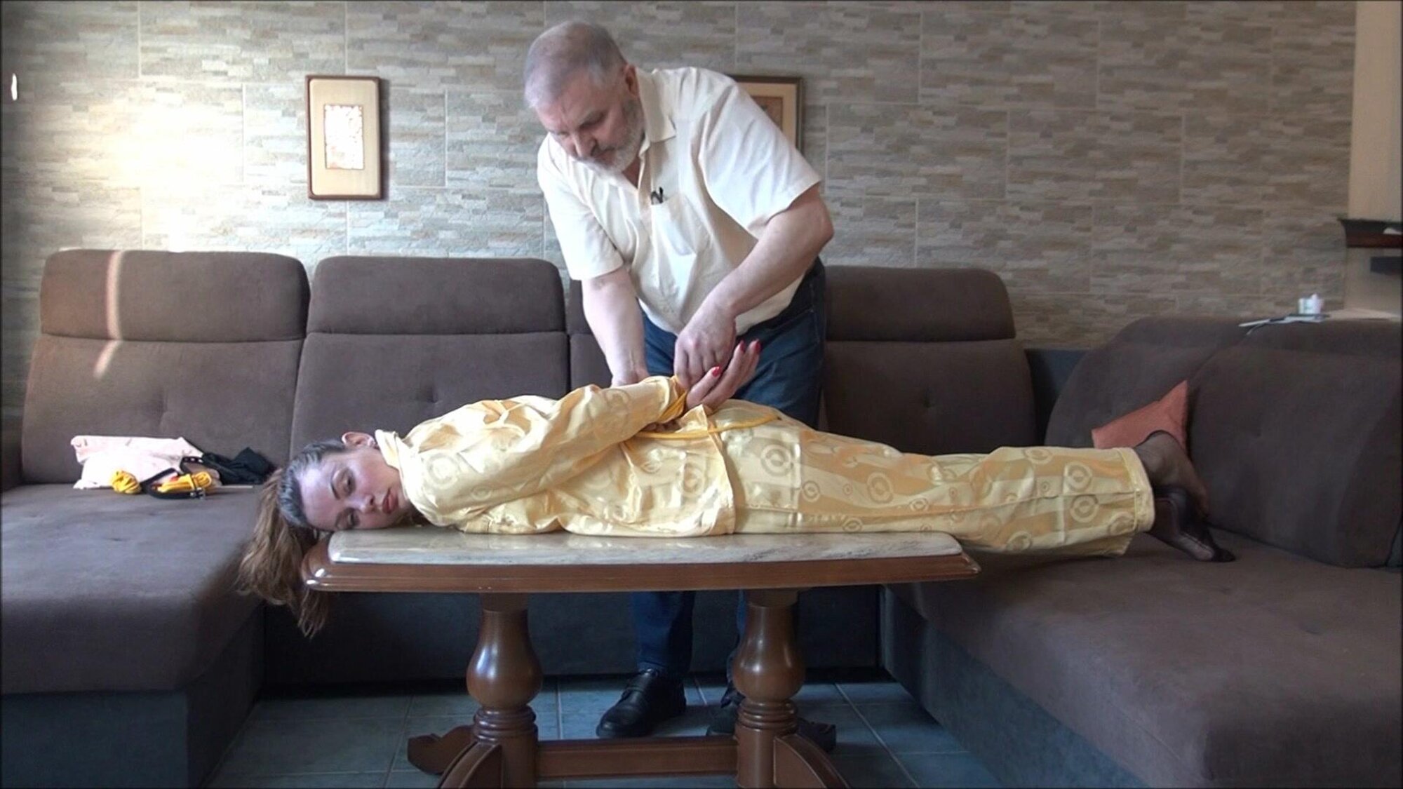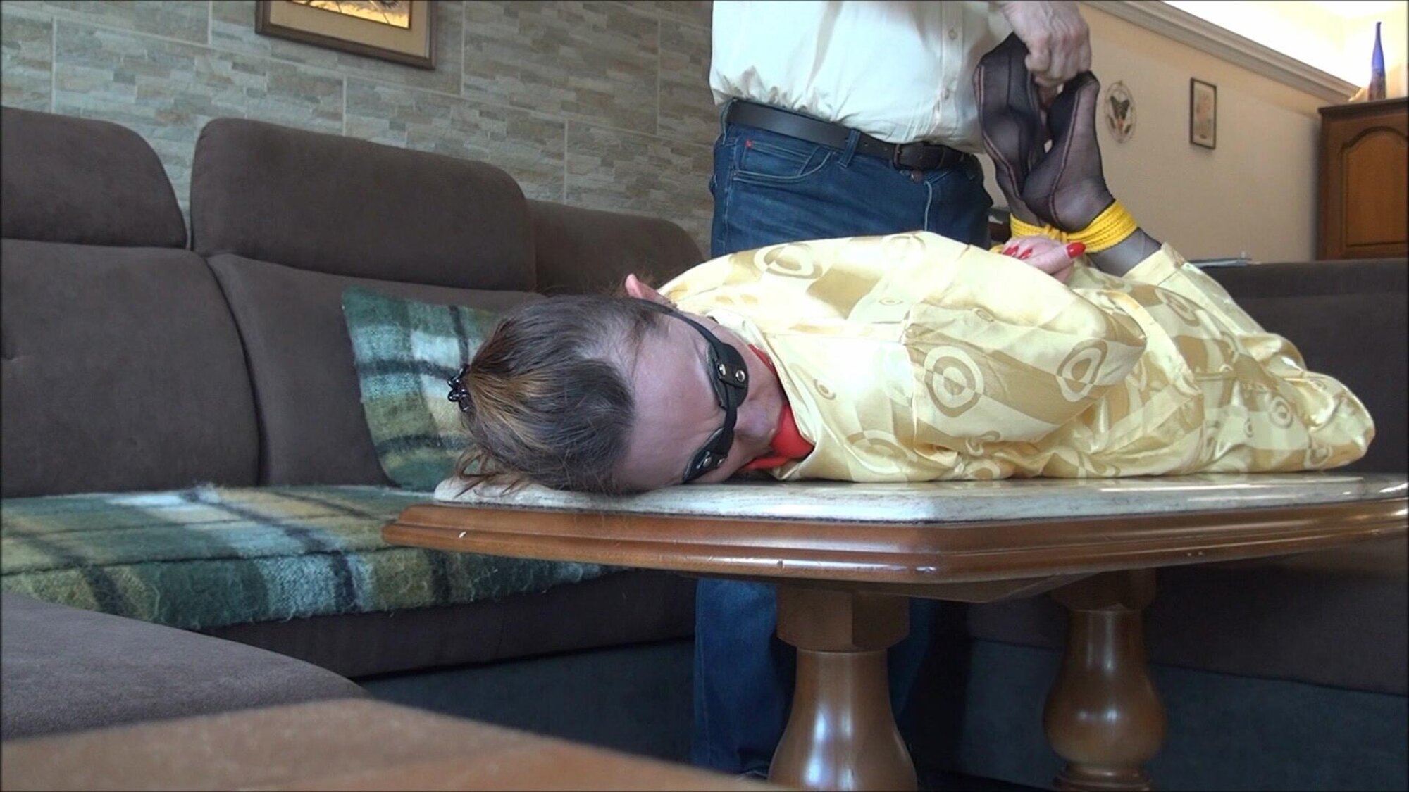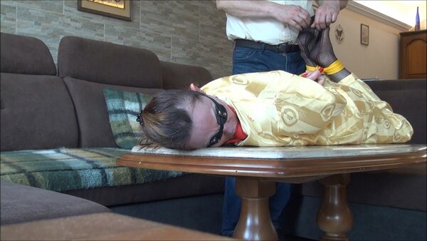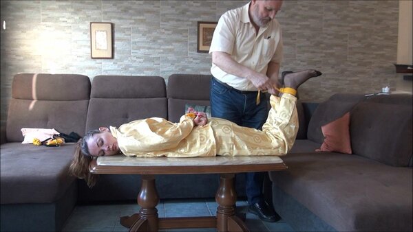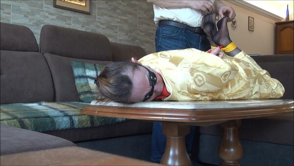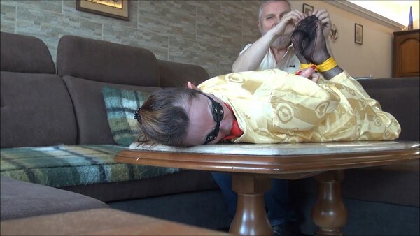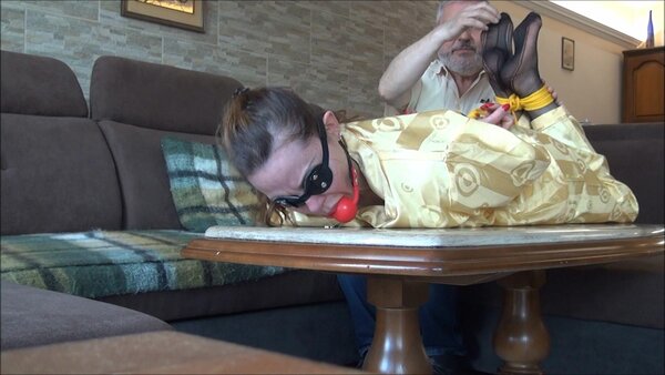 Tatjana got into debt. As an alternative to imprisonment, she has the choice to take part in a training course. This is training to become a household help under difficult conditions. Tatjana has to do her tasks tied up and pass a tickle test.