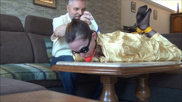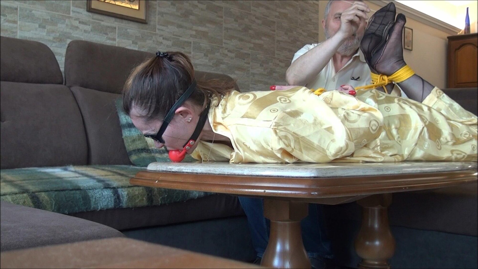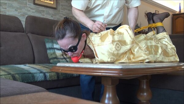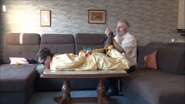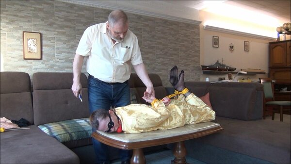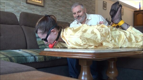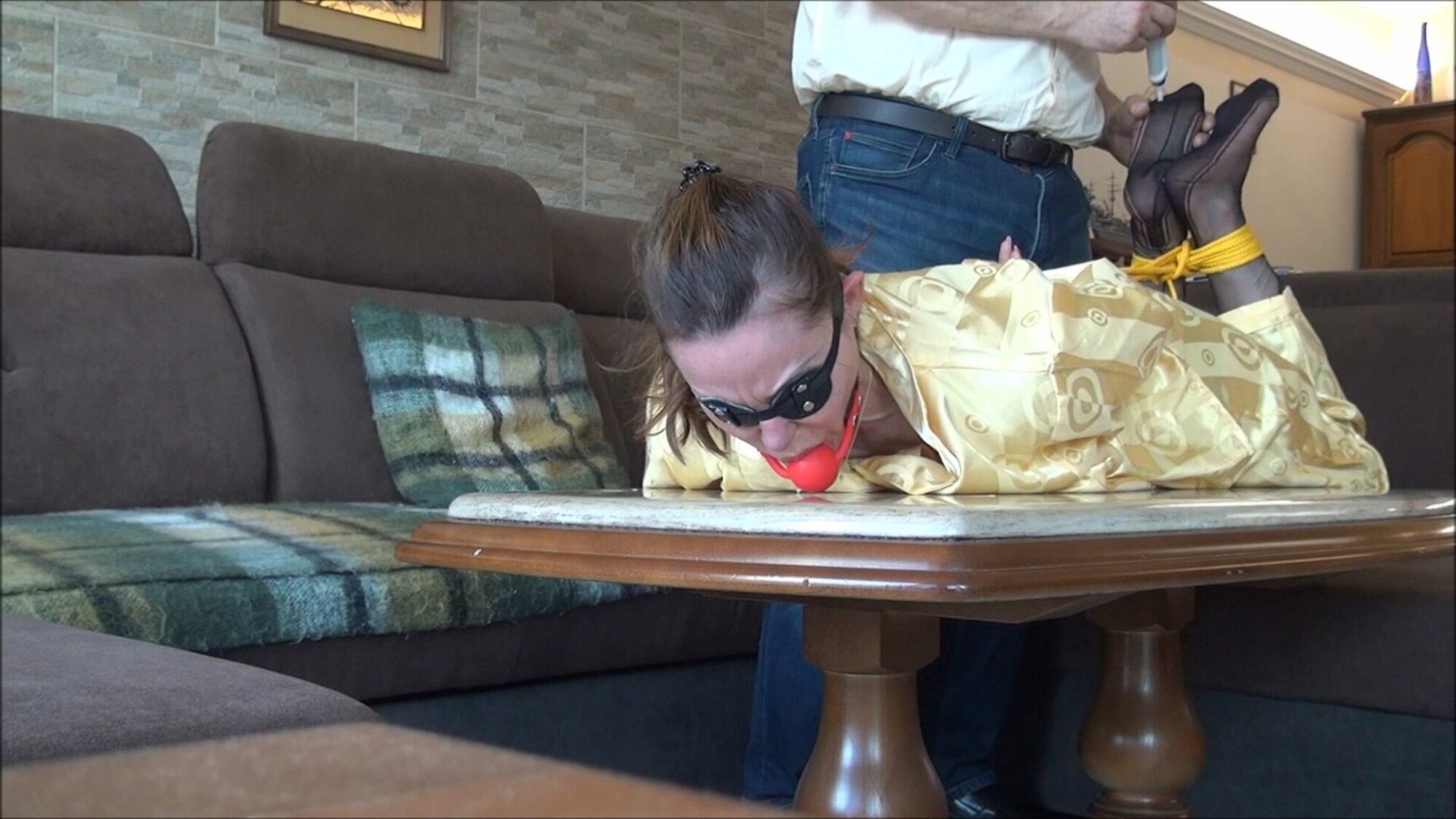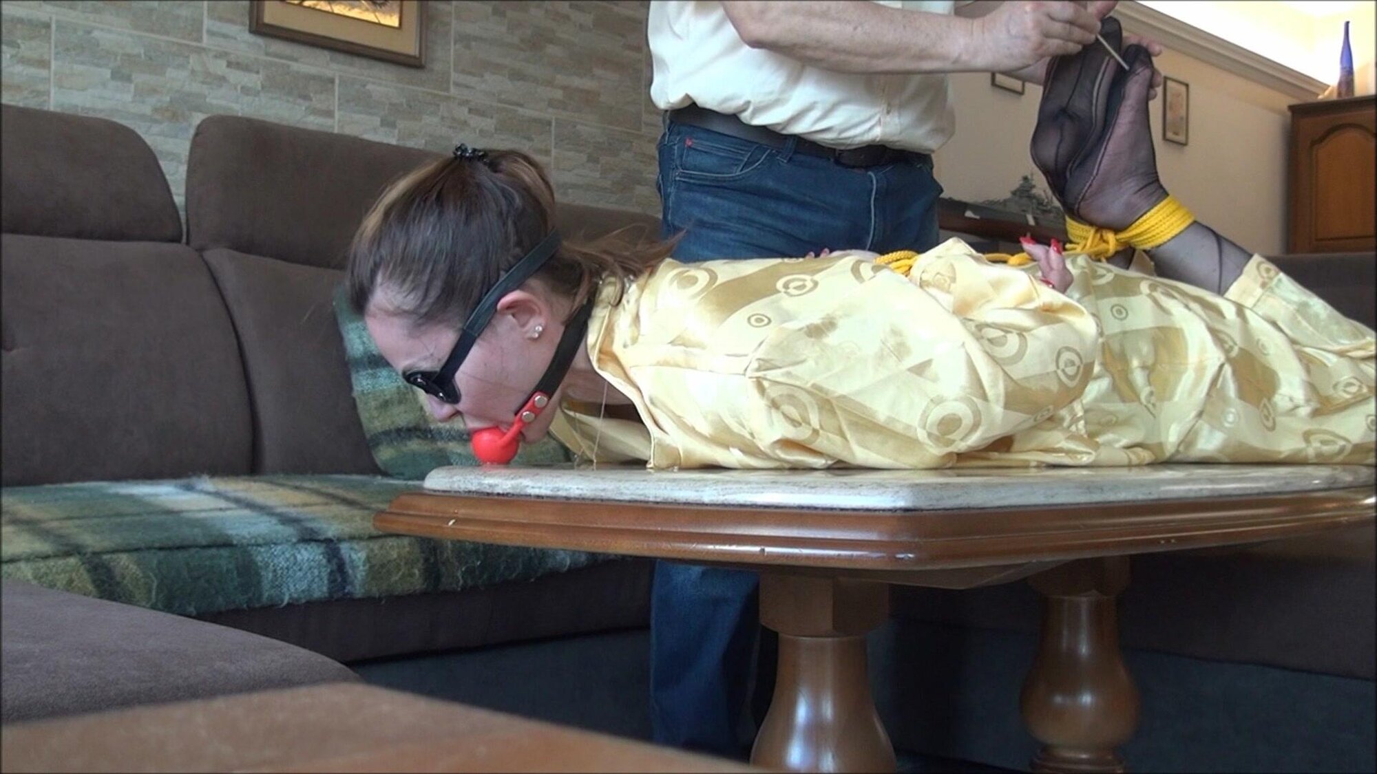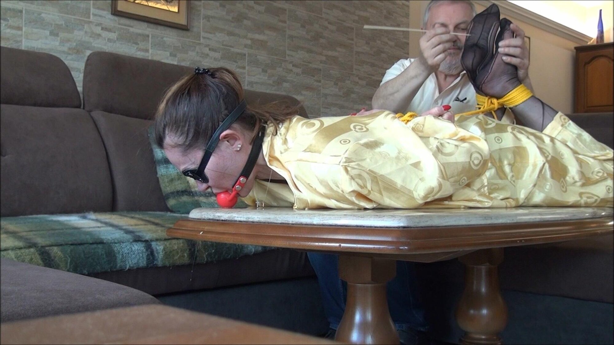 Tatjana got into debt. As an alternative to imprisonment, she has the choice to take part in a training course. This is training to become a household help under difficult conditions. Tatjana has to do her tasks tied up and pass a tickle test.