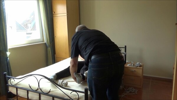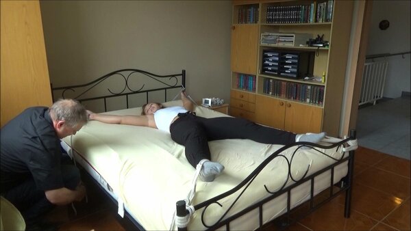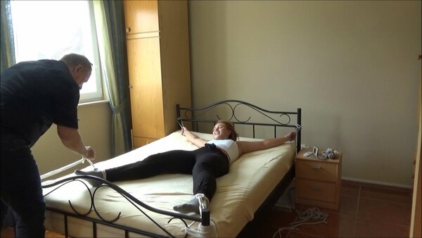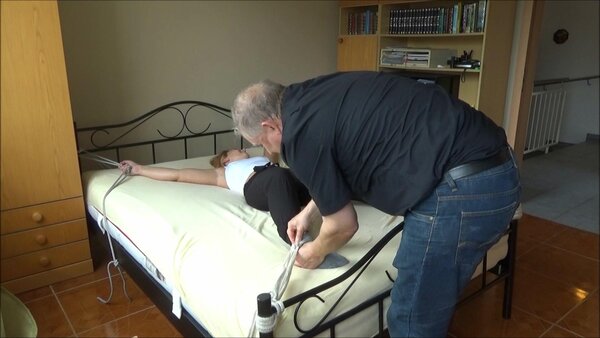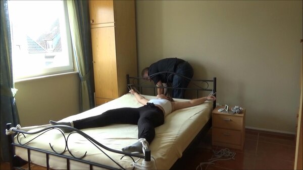 Vicky continues to pay off her betting debt and is tied to the bed by Mike before tickling.