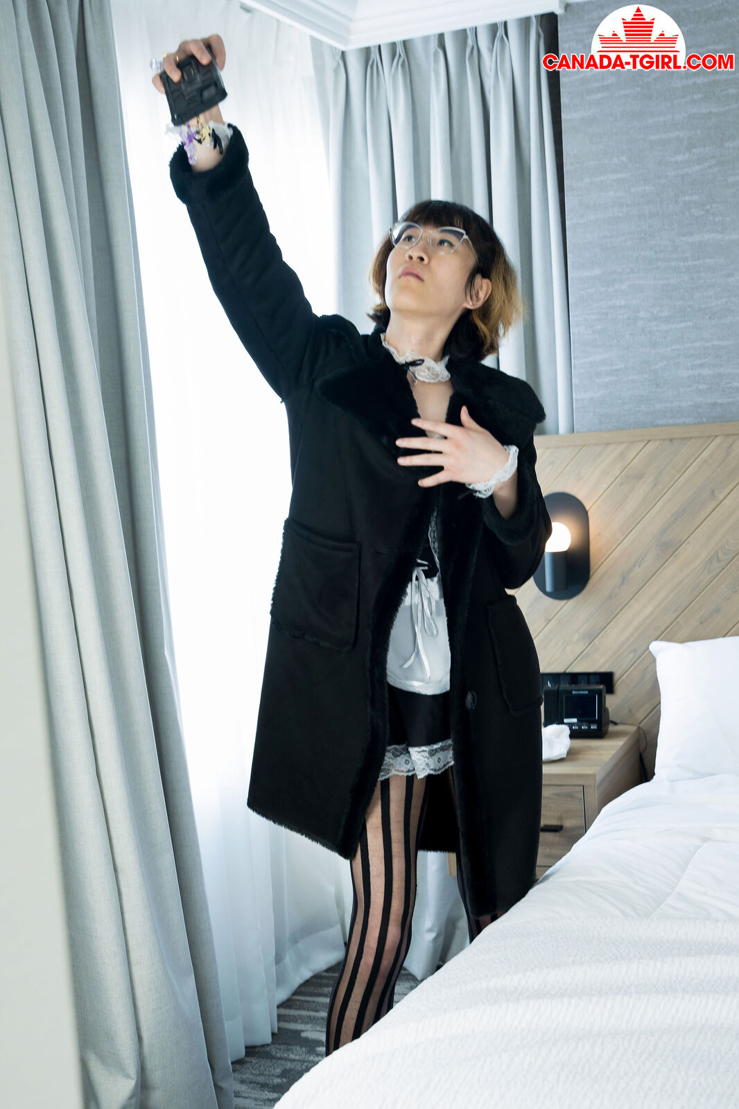 Maid Creamy Eclair is in your hotel room, cleaning and dusting, when her curiosity reveals some jewelry and the fake fur coat you've bought for your girlfriend. She tries it on and wouldn't you know it, she's turned on by it. All thoughts of cleaning goes out the window as she lays down on the bed... Read More in Members Area