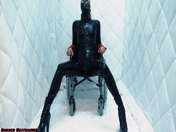 Dressed in a heavy rubber outfit, sky high heels and rubber hood we tie our patient to a wheelchair and wheel her to the padded room. There where no sound will leave.