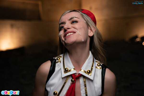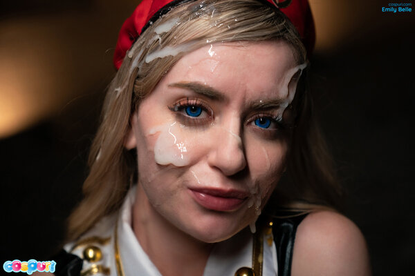 While in her sexy action cosplay Emily Belle is on her knees surrounded by 4 pulsing cocks urging her suck them. She gladly takes them on and has them brimming with cum in no time. Suddenly they all cum onto her face all at once for a surprise massive thick sticky facial!