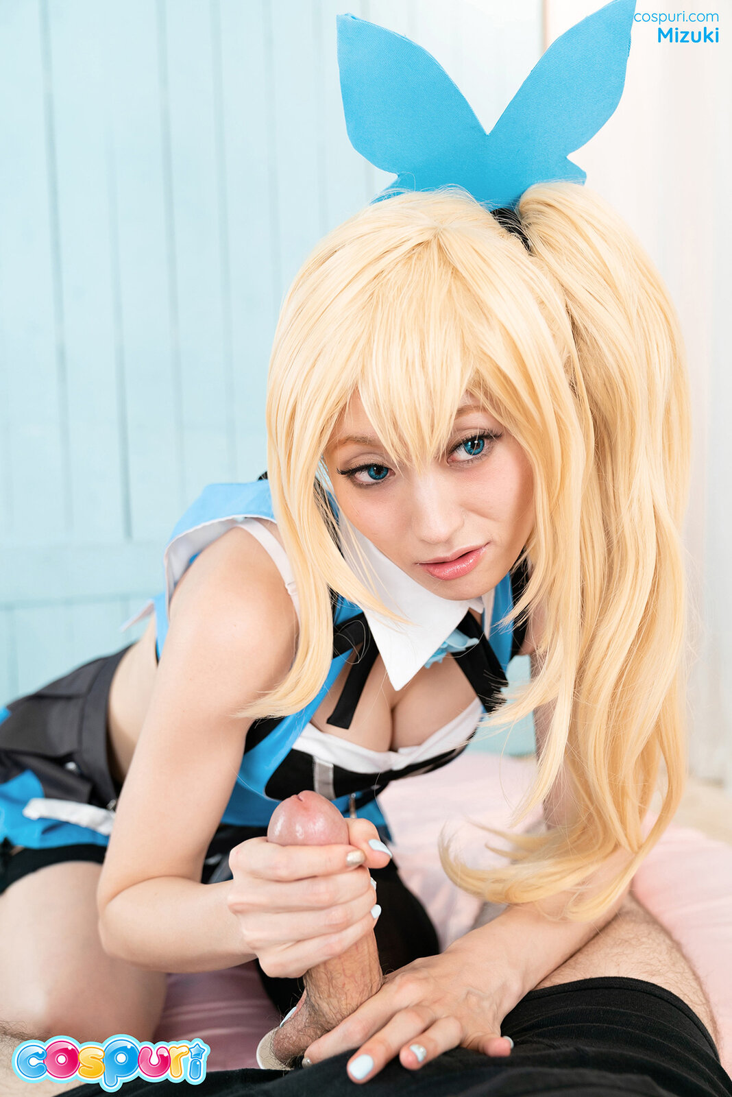 Mizuki gives you a sweet handjob while showing off her cute and sexy cosplay.