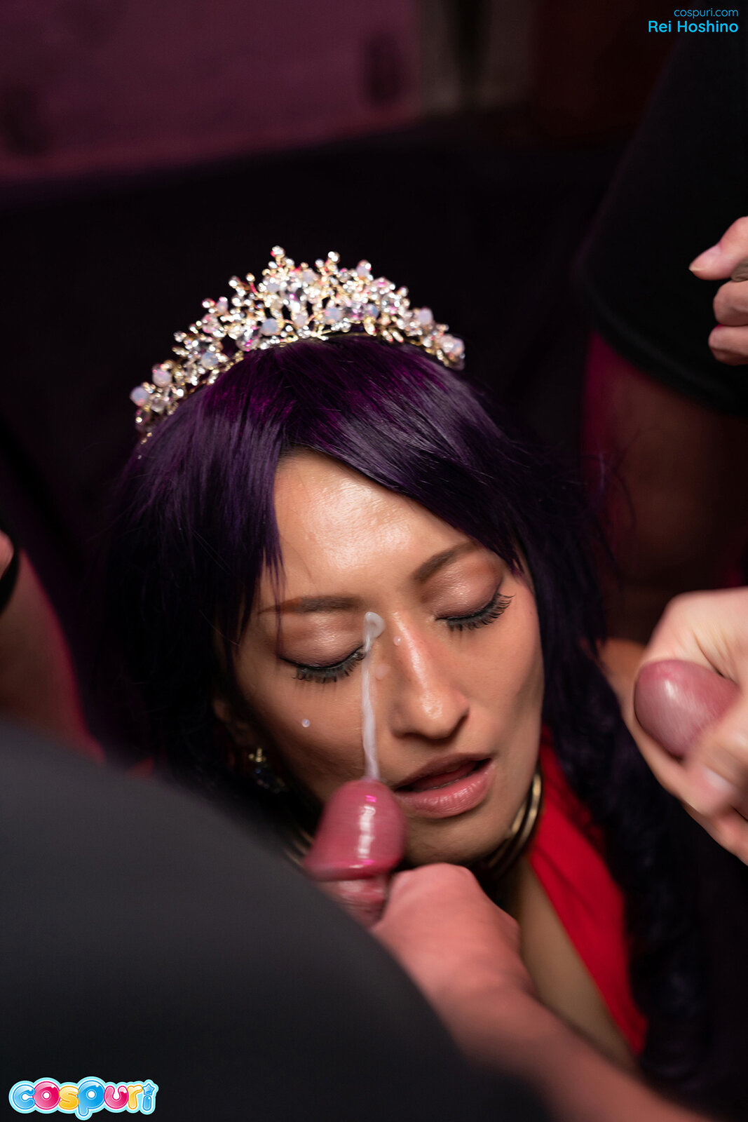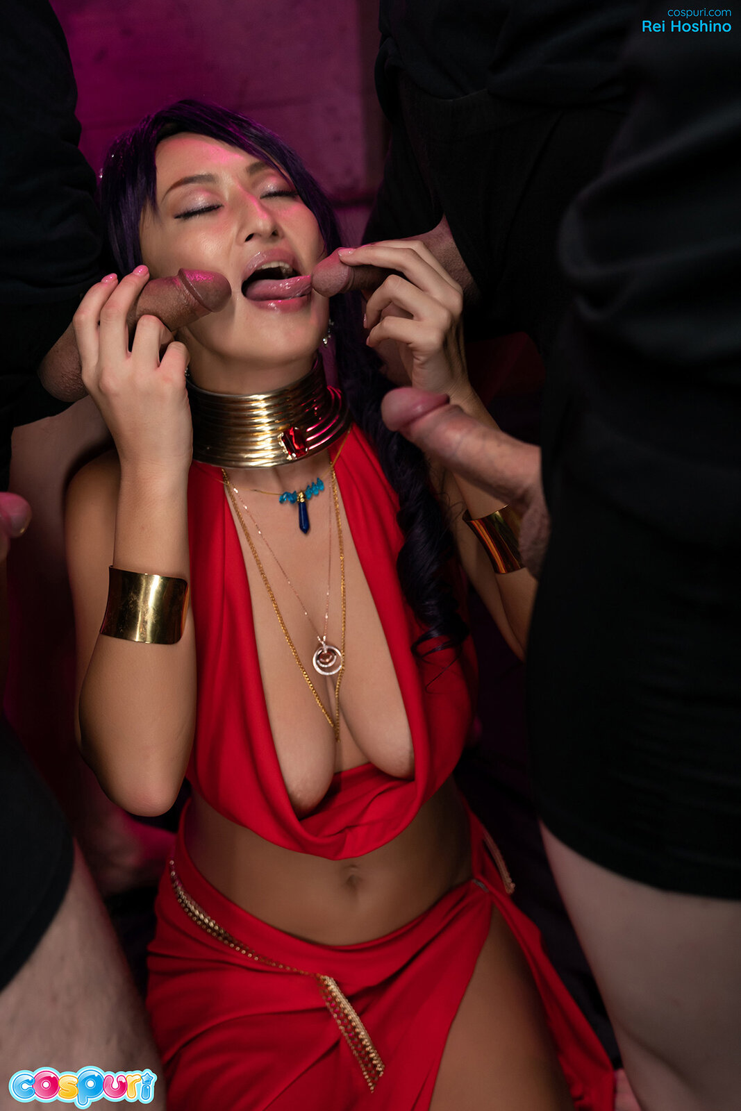 Rei loves to be surrounded by cocks when she's in her sexy fuck goddess cosplay. As soon as erect cocks come near her without hesitation she begins stroking and sucking in anticipation for their hot splooge. As if she casts a spell, on queue they all cum onto her face at once, leaving her in a sticky, cummy disarray, much to her satisfaction.