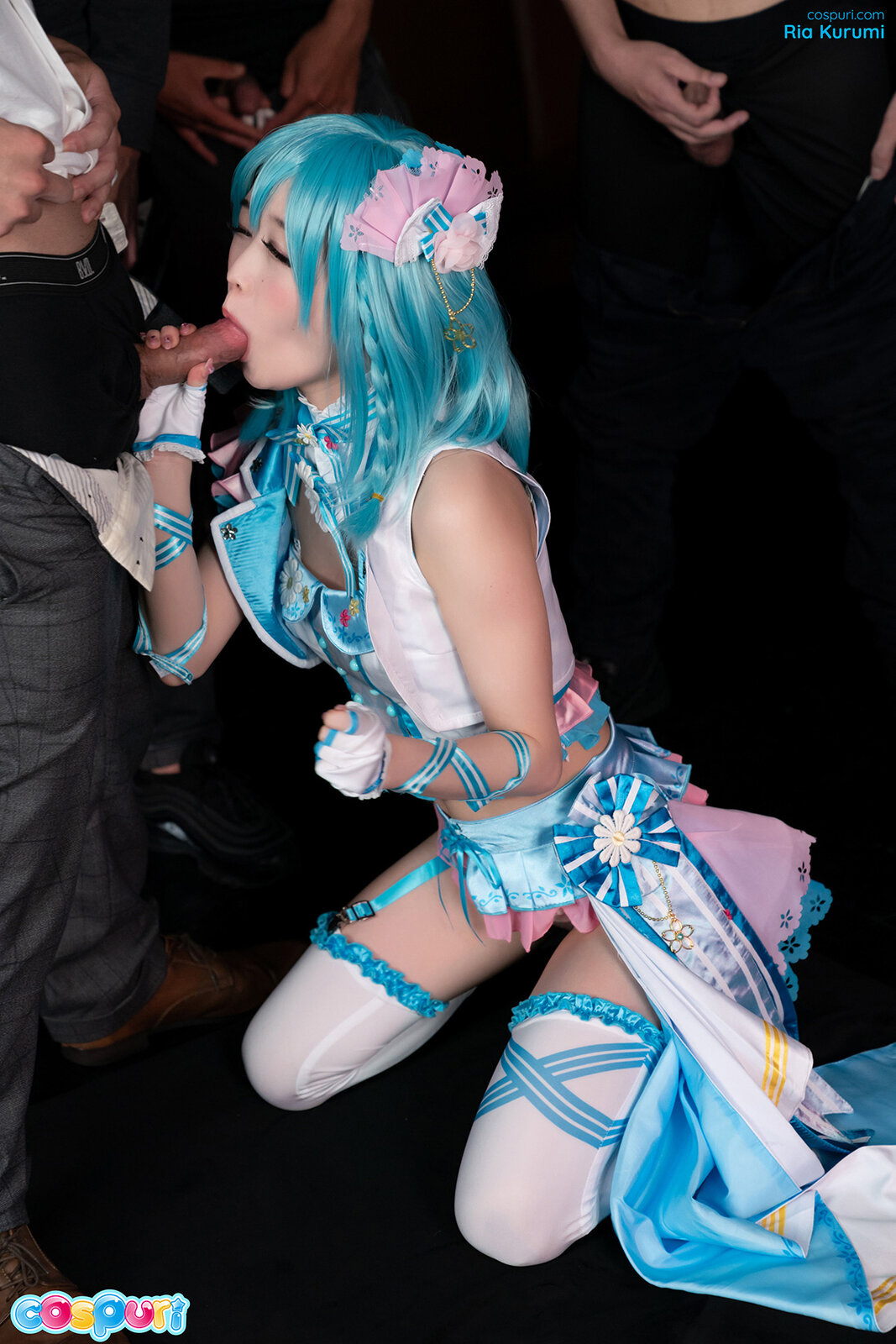 Ria Kurumi sucks off 9 of her fans at the after party from her cosplay performance! She lets them all cum into her sweet mouth and smiles and giggles as the next hard cock appears for her to suck.