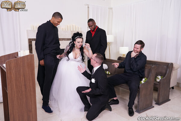 It's Payton's Special day and she is doing it her way. The wedding plans are all set and she made sure some special guys were coming as well besides her little dicked husband. The Preacher is a big man in all ways and so is her witness Jon Jon. When it comes time for her Husband to Honor and Obey her he does it on his knees and is quickly shown how things will be from now on in this marriage. She pulls the Preacher over with his big cock and sucks it looking right into her husband's eyes and her Witness Jon Jon is quick to get his dick out as well. They take her right there in the church with her wedding dress around her waist still. Her Husband of course thought they would only do this in private but Payton wants Alex to know she is in charge from now on.