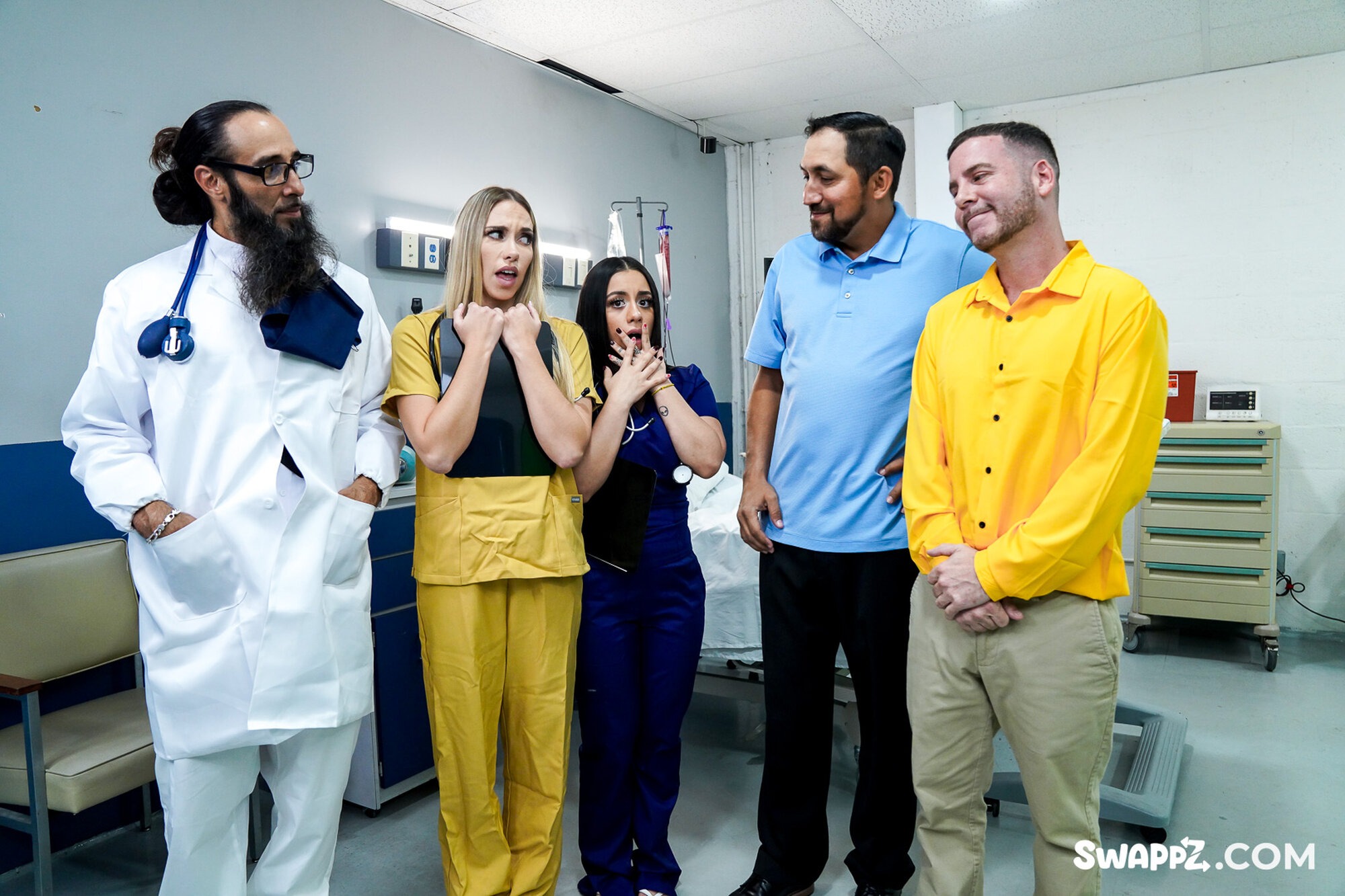 My friend and I just started working at a fertility clinic. Everything was going great, until we got our first two patients - our stepdads! There was no way we were going to follow the procedures to get their cum out, but we also didn't want to get fired on our first day. The doctor could tell how nervous we were, so he let us swap patients: she'd deal with my dad, and I'd deal with hers. The only condition was that we had to follow all the doctor's instructions, or else... We didn't know this clinic was so unconventional. We even had to use our mouths to get their cum. Don't they have machines for that or something? By the time the doctor said "emergency penetration," we were way too into it to back out. In fact, we were ready to swap again and willing to do everything to get the best semen samples.