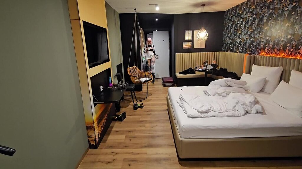 Our new mini slave (she is only 130 cm tall) is shown for the first time in front of the camera. Tested and also hung on the fucking machine for testing