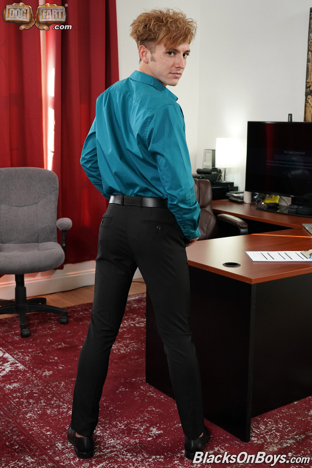 Cameron is just out of college and so excited to be on to his first job interview. He is surprised there are two men interviewing him and not only that they are hot. They are pretty direct about what they want and ask him to show them some skills on the computer. When he opens the screen it's a giant porn page with a photo of another young man with big dicks in either hole. Cameron asks, ``What is expected of me here? They start to unbutton his shirt in answer and quickly start tag teaming his mouth with his ass to follow. Cameron is obviously right at home here when he cums hard while riding those dicks, pretty sure he got the job too.