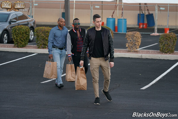 Dan is out doing a little shopping when he sees two hot guys trailing him everywhere. He goes everywhere and they seem to follow him leering at his ass. Not one to miss an opportunity when he gets to his car he asks them what they are looking for and it seems it's his ass. A quick package check and suck in the back parking lot and he sees they have what it takes to get them back home. Back at his place Dan is quick on his knees to please these two Big Cocks and even tries to take both at the same time but his hole is too tight to take it. He rides and fucks like his life depends on it and finally takes two loads on his face for his reward.