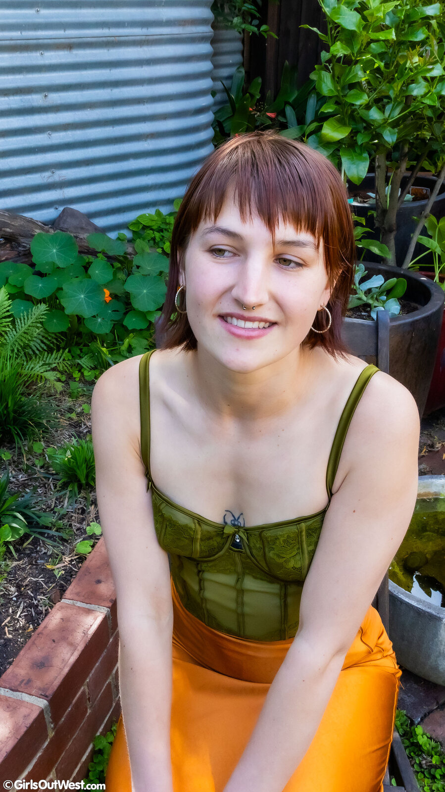 Maya enjoys the garden setting, breathing deeply and getting in the mood for self love.