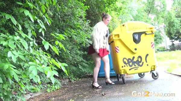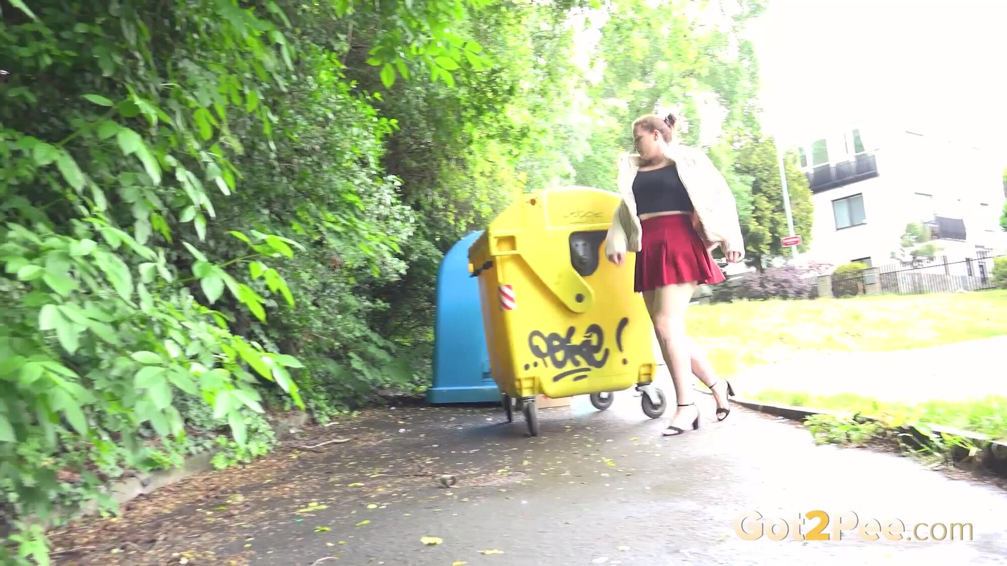 Curvy brunette Chloe Kinky rushes over to the back of some recycling bins in the suburbs to relieve her piss desperation. She pulls her panties practically off and squatting to pee, aims a straight stream of golden nectar down onto the ground while we capture the action for Got2Pee!