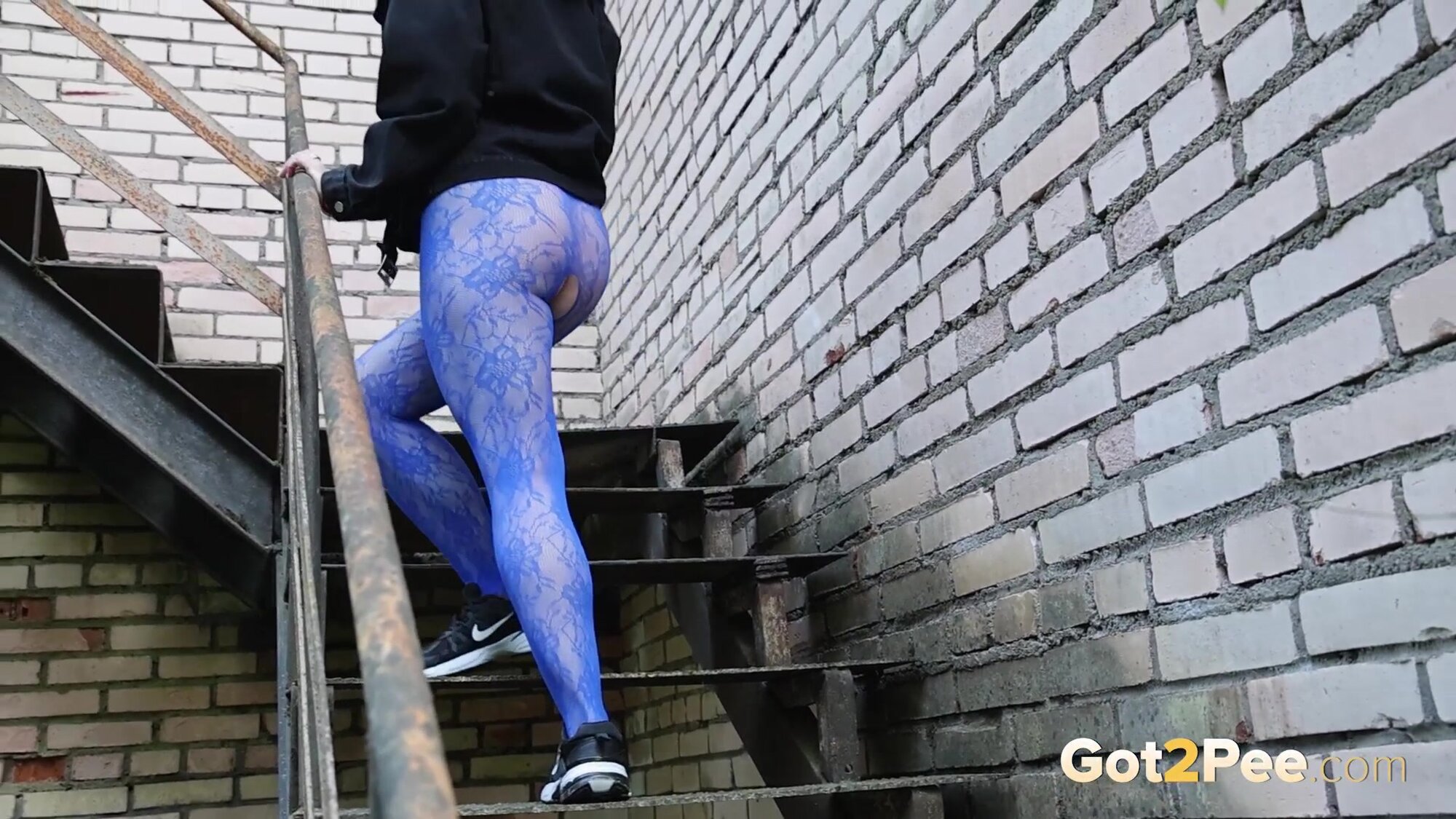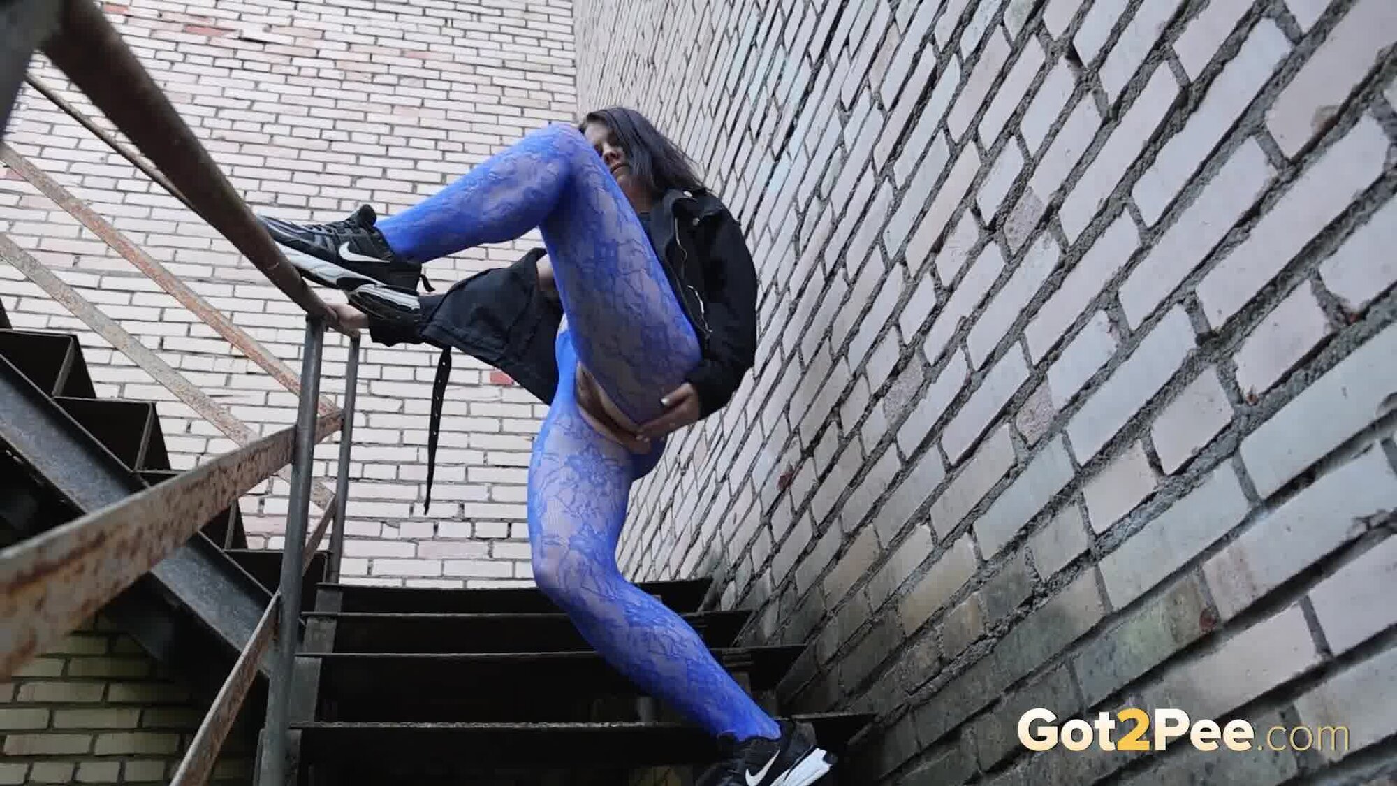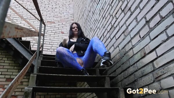 Alice Wu features in our latest Got2Pee scene and this naughty babe shows off her ass in a crotchless lace bodystocking. She walks up some steps outside and spreads her legs. Squatting to pee, Alice sprays her bursts of piss down onto the steps while we zoom in close for this pissing porn scene.