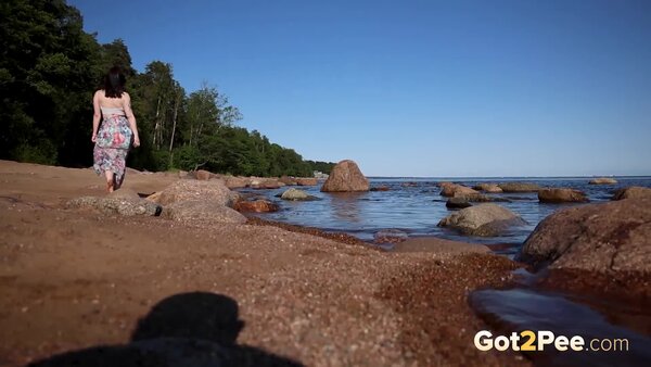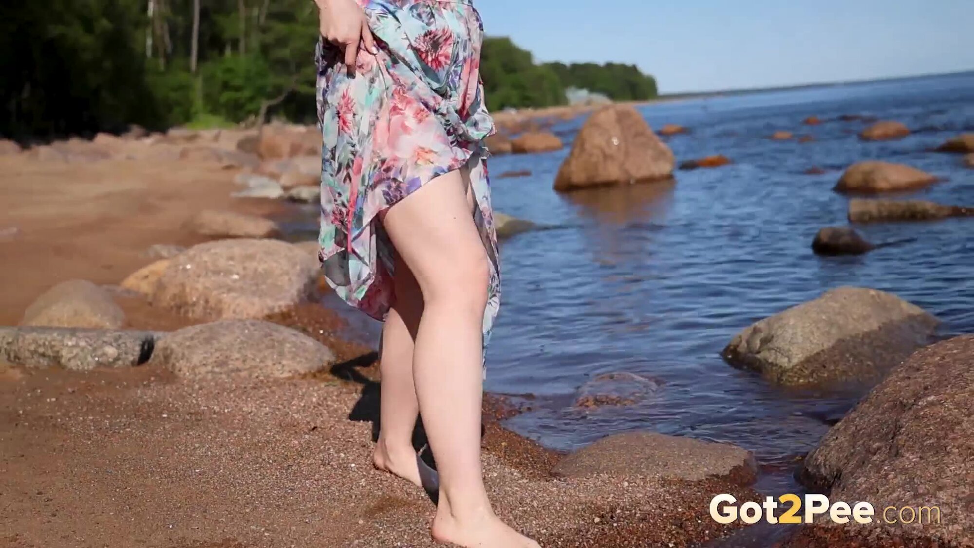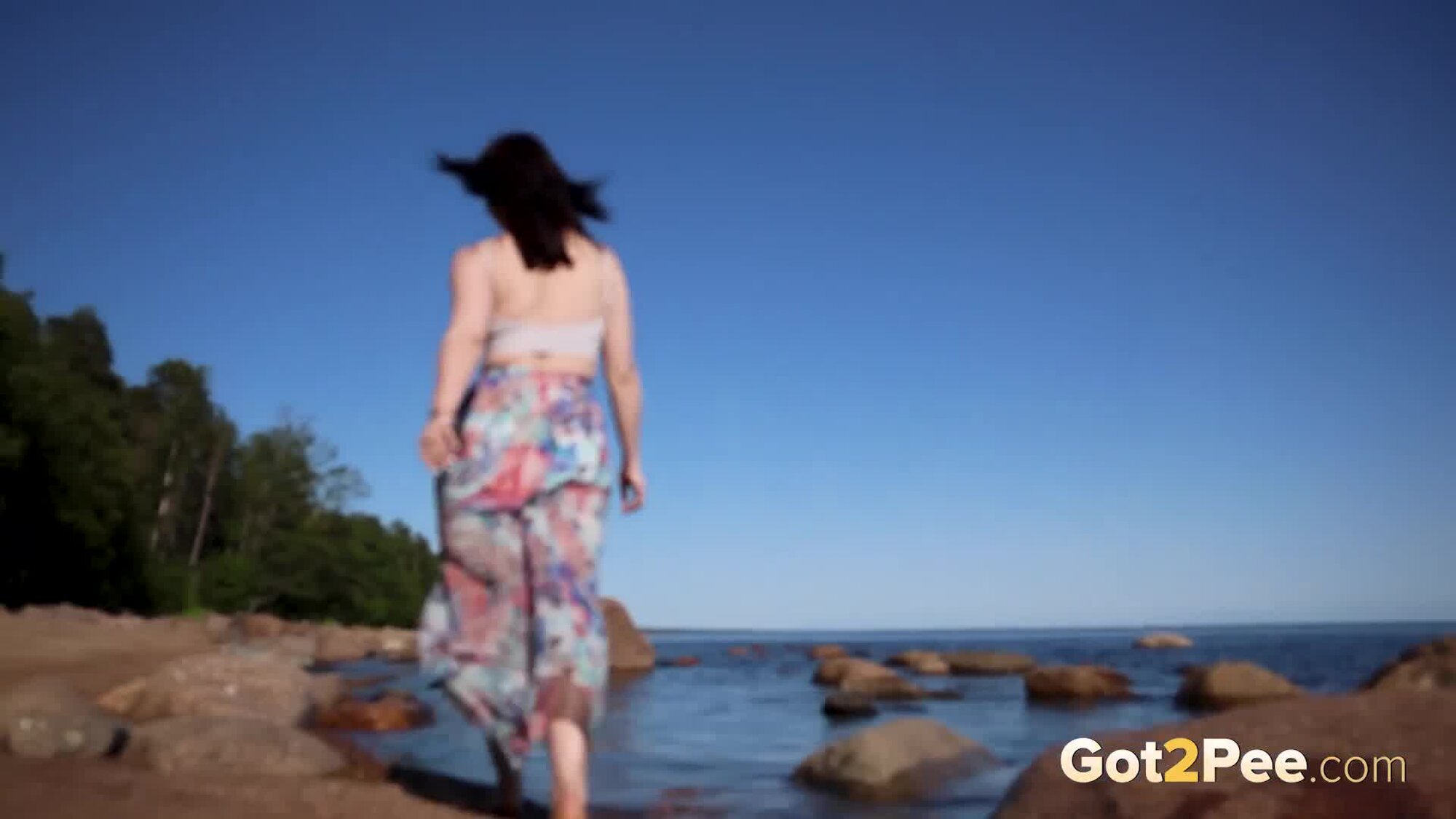 Alice Wu returns to Got2Pee and walks along the beach in this new pissing porno. She lifts up her floaty skirt, revealing that she isn't wearing any panties and then sits on a rock in the sea with her legs spread wide apart! Alice relieves her pee desperation all over the rock, letting her stream flow on down into the shallow water!