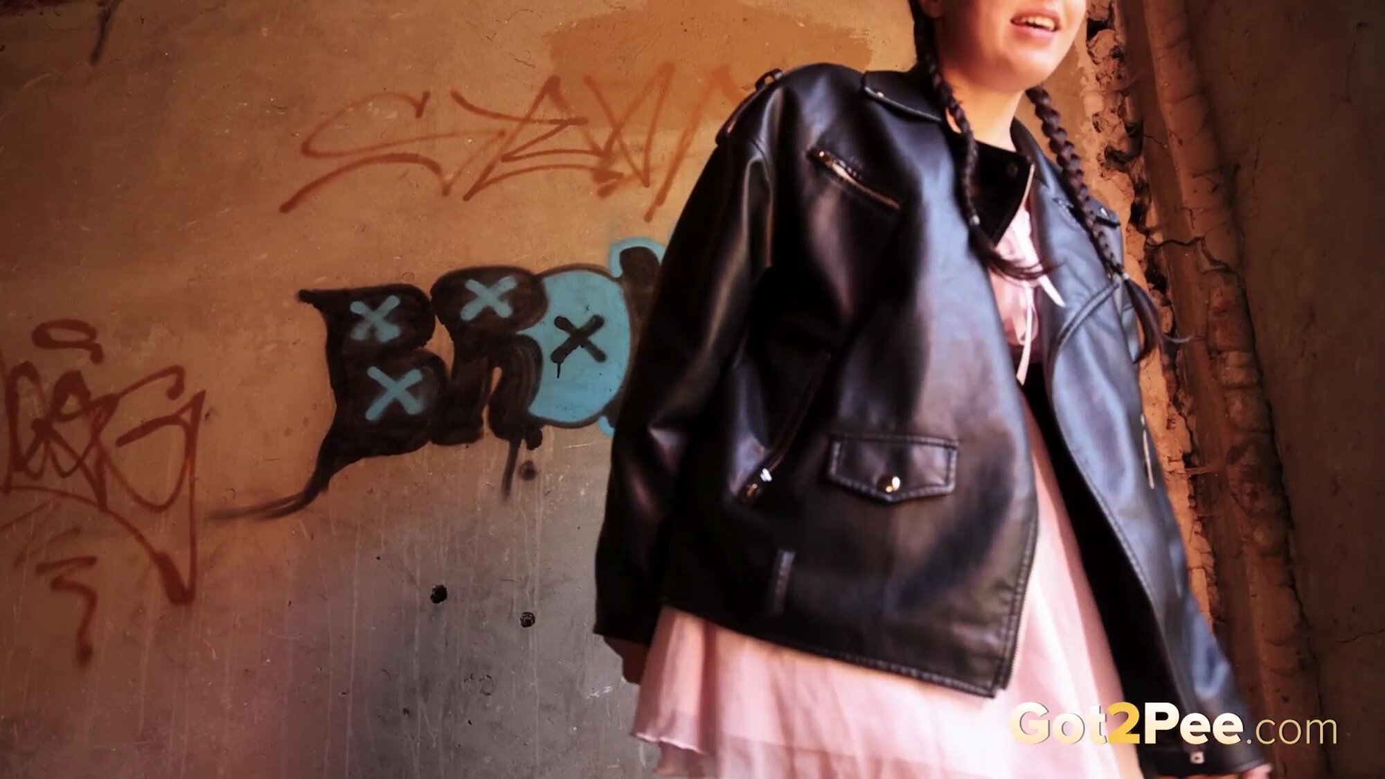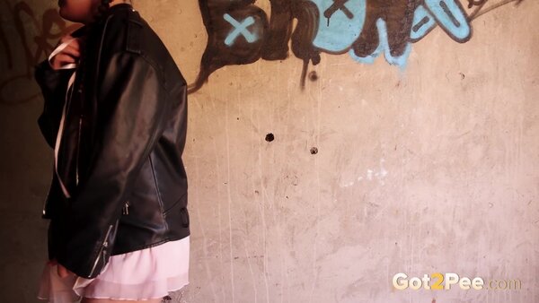 Violet Rilz is back for another pissing porn video here on Got2Pee. She discovers a dark empty building and walks inside before lifting up her floaty dress. This playful babe rubs her pussy and then takes off her panties before she turns around and spreads her legs to pee standing!