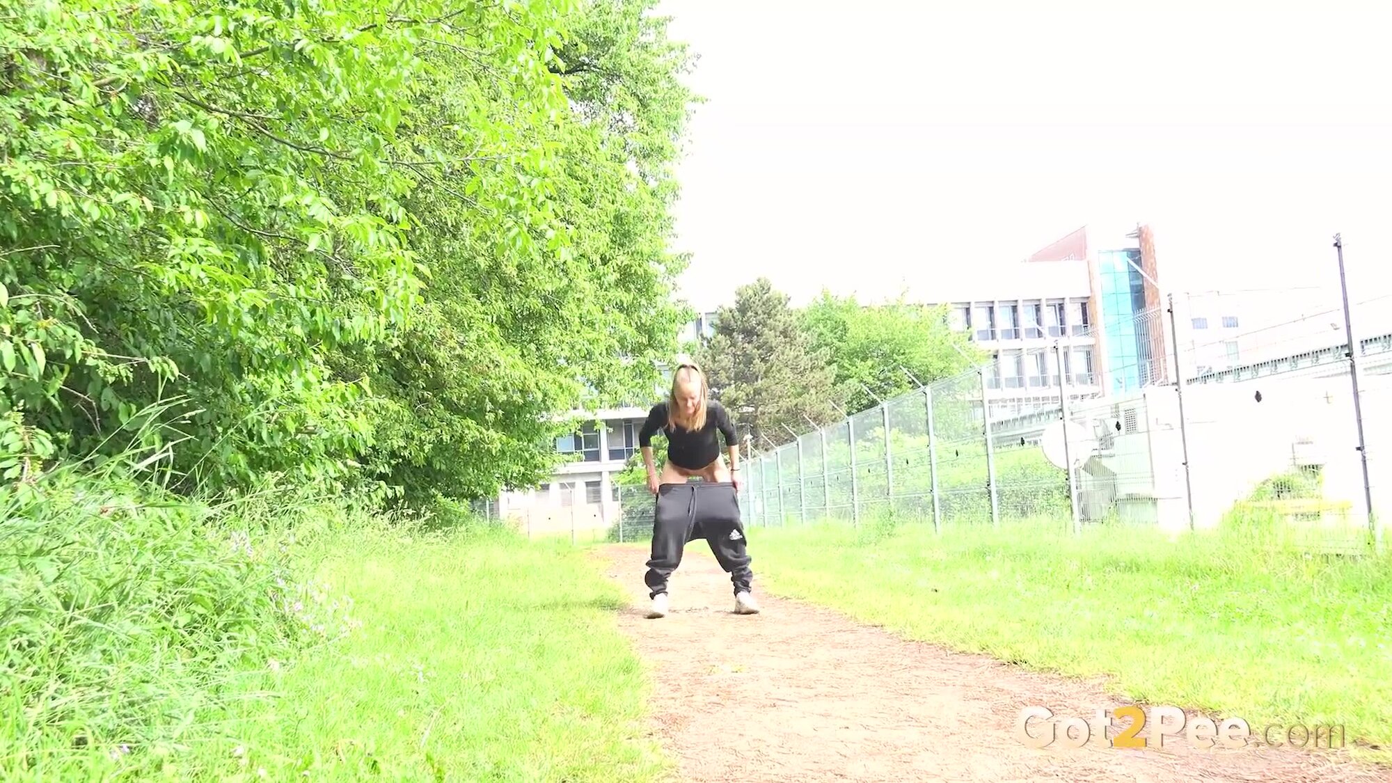 Naughty babe Sweety features in our newest pissing porno and this slim babe walks down a path in the suburbs before she decides to stop and pull down her jogging bottoms. Squatting to pee, Sweety nearly touches the ground as she relieves her piss desperation while being filmed for Got2Pee.