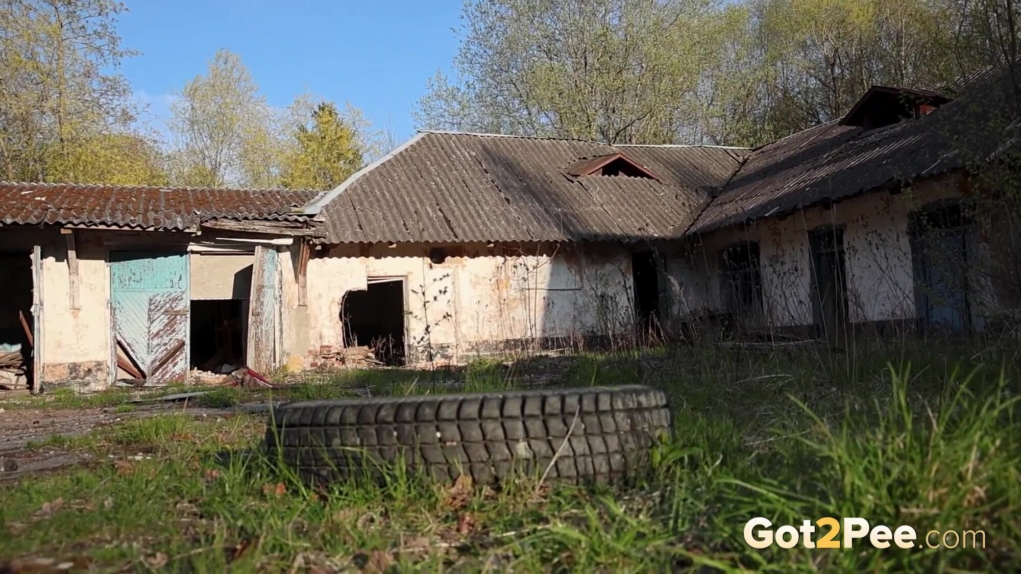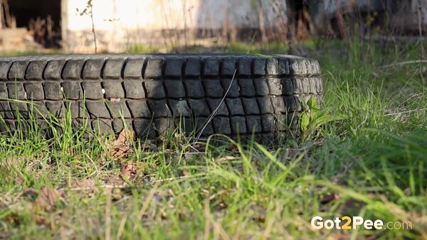 Miss Kapriz is throwing off Britney vibes in her red PVC catsuit in our latest Got2Pee pissing porno! She walks near some abandoned buildings and stands on top of a huge tyre while revealing that her catsuit is crotchless! Miss Kapriz turns around and bends over before pissing onto the ground while we zoom in close. This naughty blonde devil finishes her pee standing and then walks off!