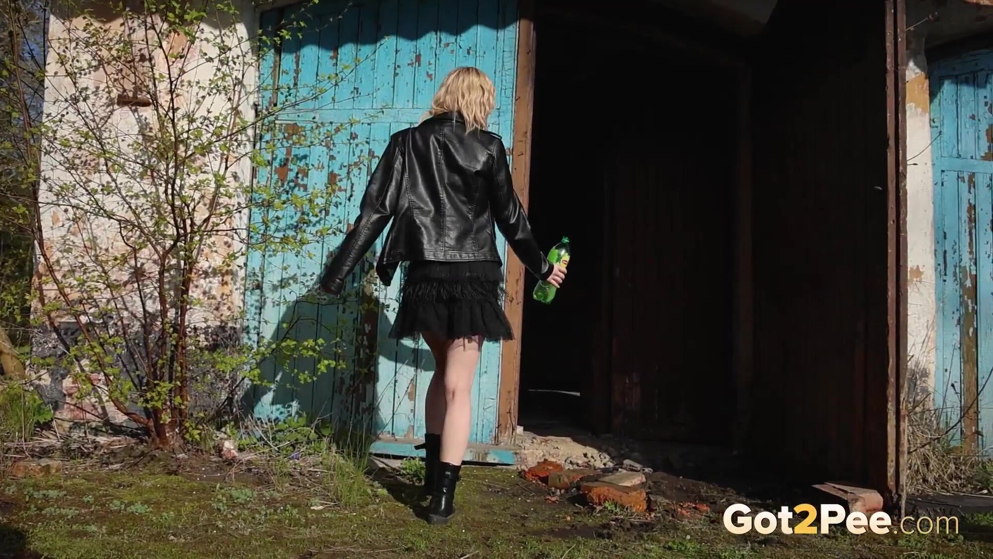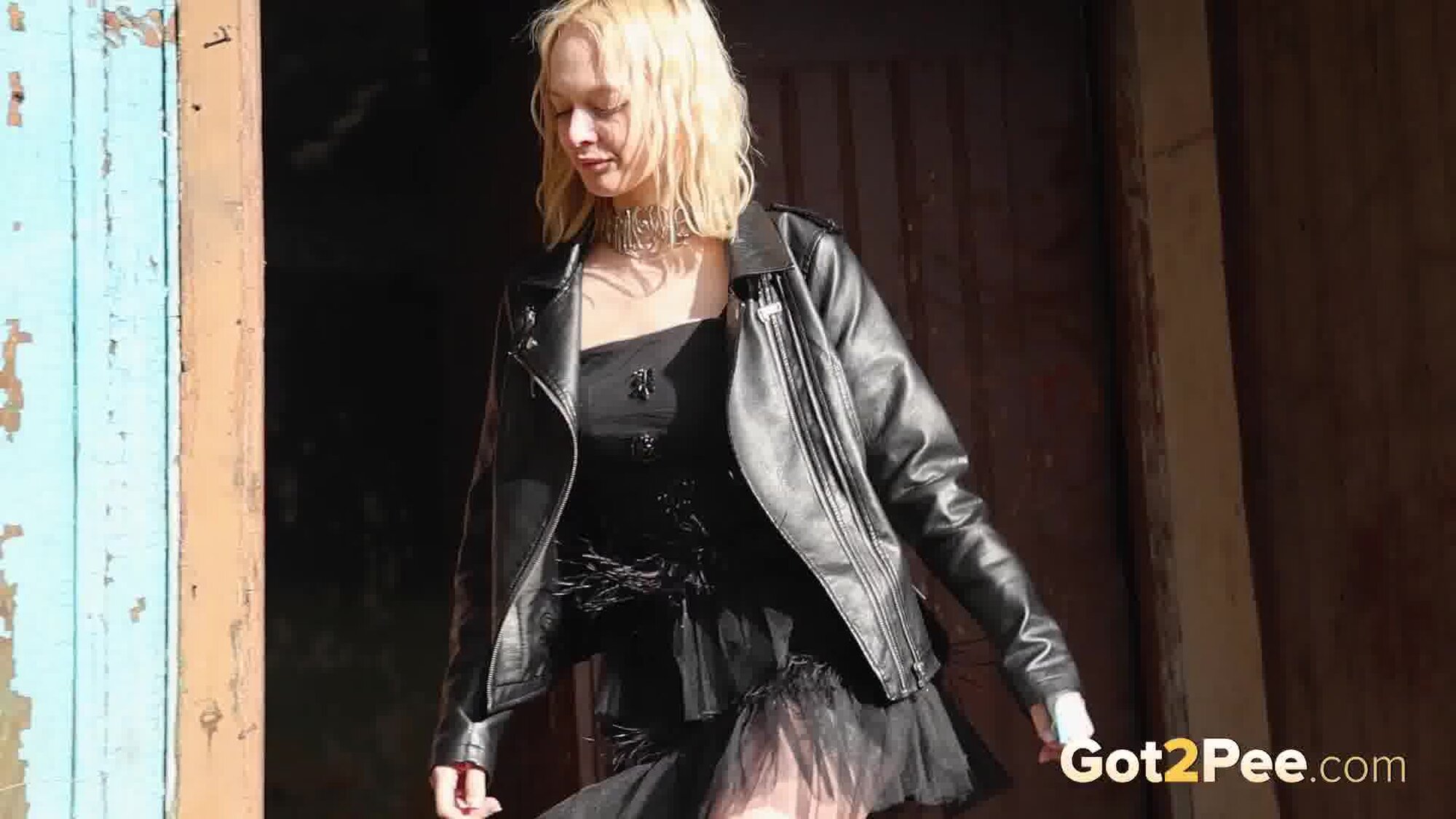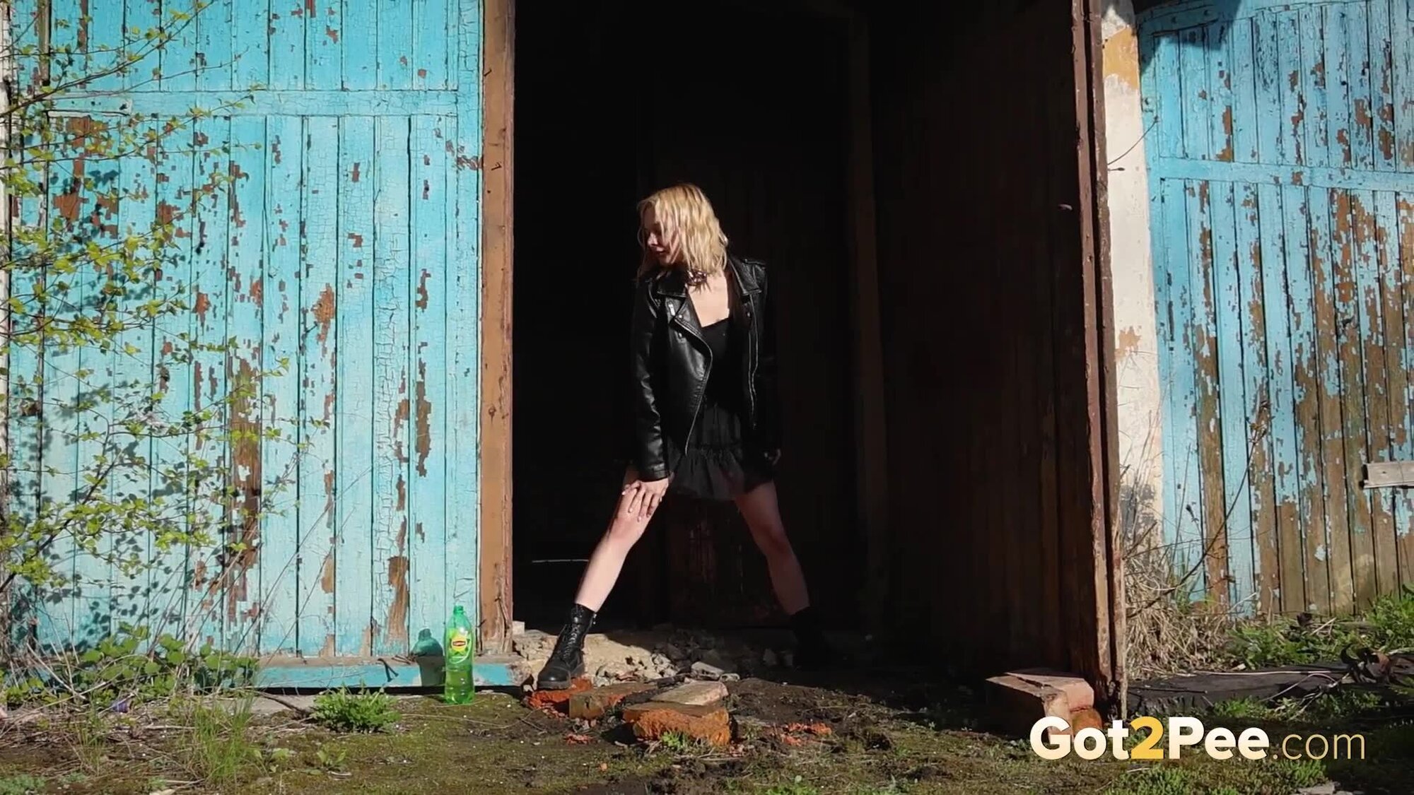 Our latest Got2Pee pissing porn scene features hot blonde Miss Kapriz who is talking a little walk in the suburbs. She heads over to an old, open barn and steps into the doorway before she enjoys a pee standing while holding onto her pussy. She looks very relieved as she trickles over the floor.