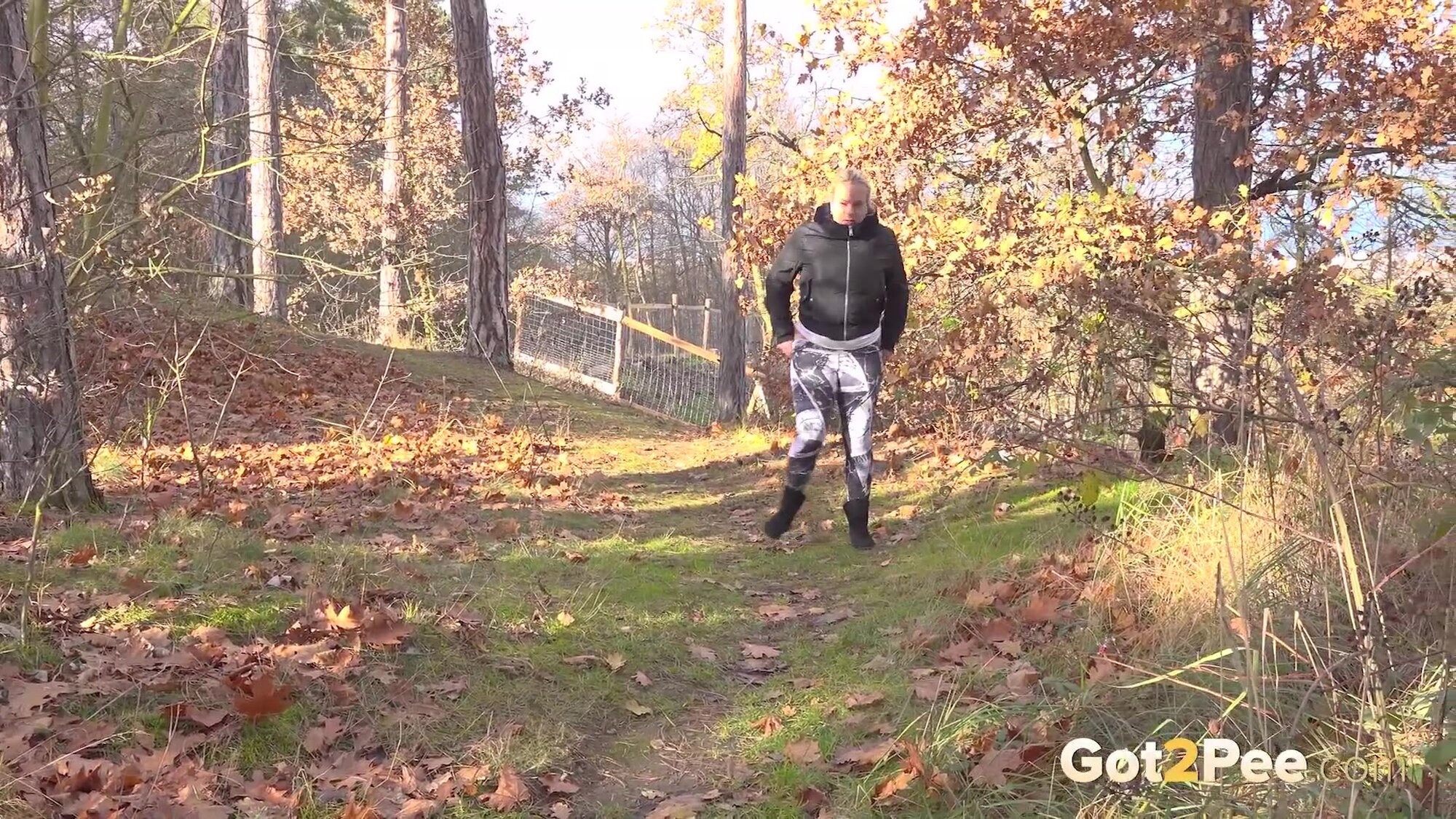 Watch our newest pissing porn video here on Got2Pee as a curvy blonde walks in a leafy area of the suburbs. She pulls down her patterned leggings and gets filmed squatting to pee. We zoom in as her messy stream runs down over her ass and sprays onto the grass.