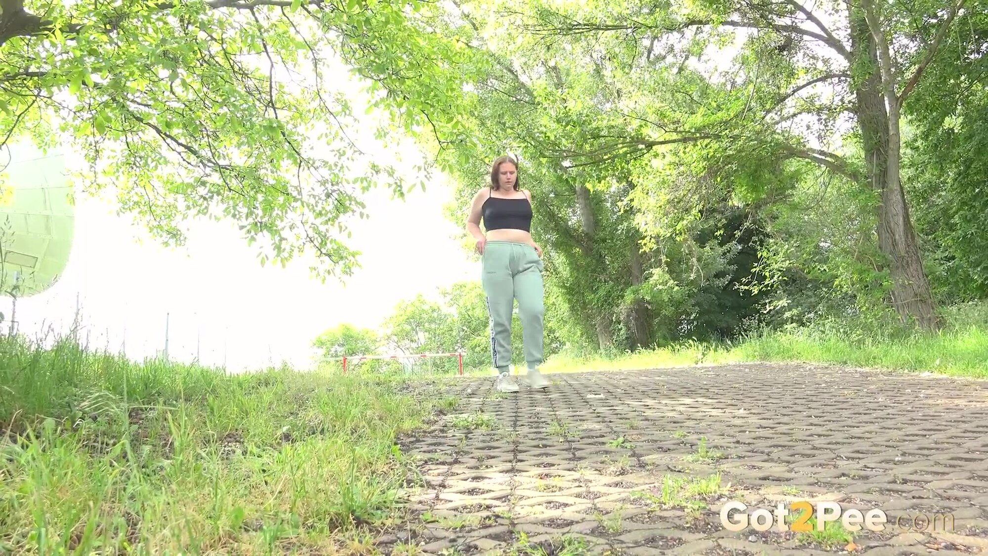 Chloe Kinky features in our newest Got2Pee public pissing porn video and this curvy girl walks across the suburbs and stops to pull down her pants. Squatting to pee, Chloe lets her juices flow down onto the ground while a jogger runs past in the distance!