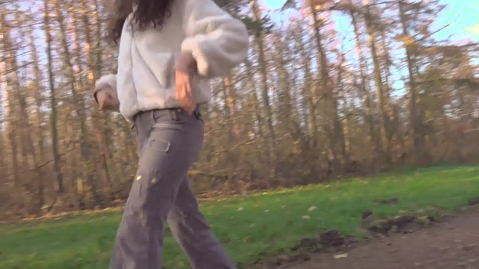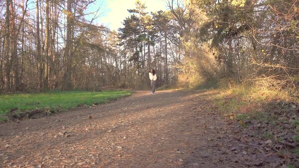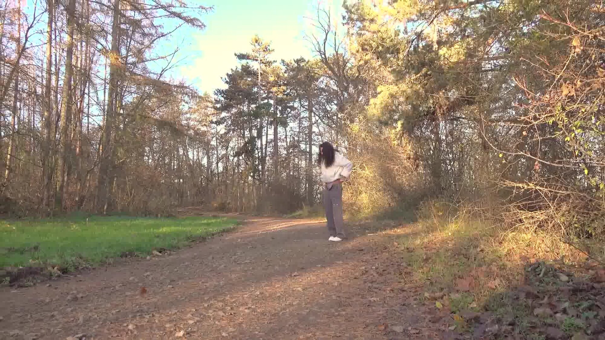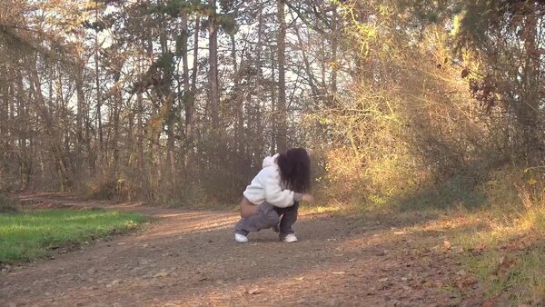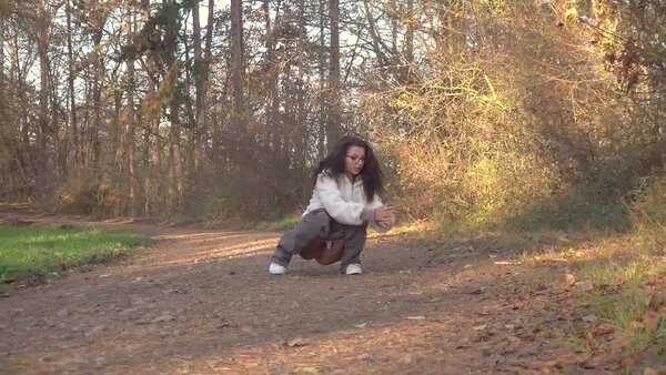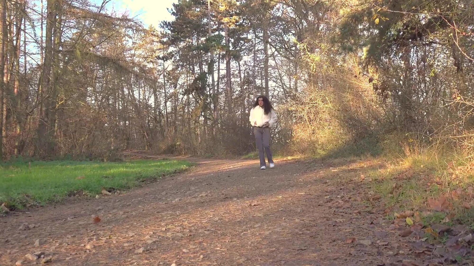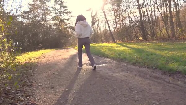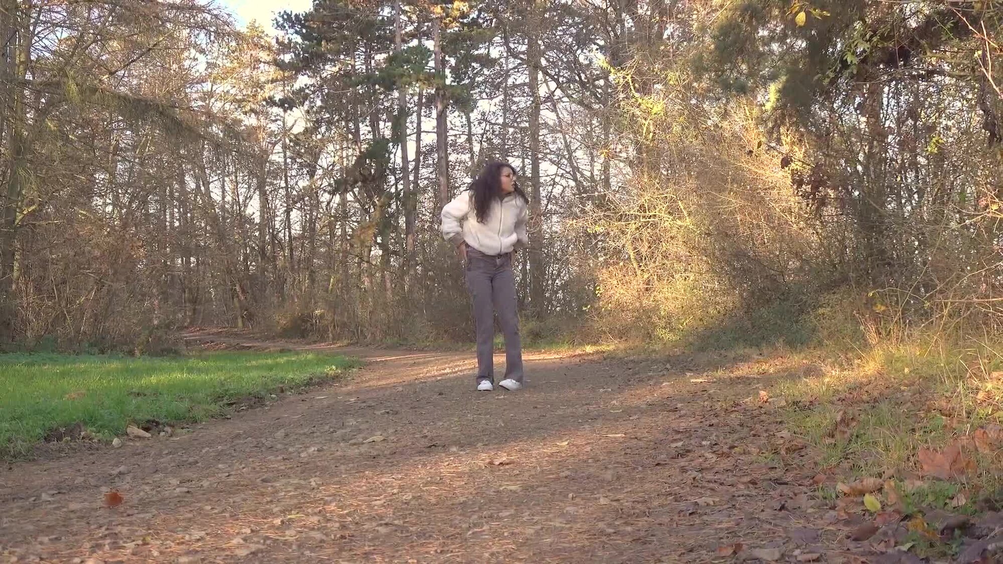 Gorgeous brunette Mini Mitzi is walking along a countryside track road when she looks to be suffering from pee desperation. She stops and pulls down her trousers while looking around, then squatting to pee, holds onto her pussy as we zoom in on her stream as it flows down to the ground. Another perfect addition to Got2Pee!