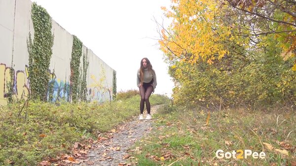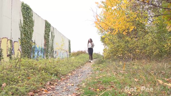 Watch our latest Got2Pee pissing porn movie with a cute brunette European who looks around before she decides to stop on a path in the suburbs. Squatting to pee, this hottie holds onto her pantyhose while spraying a neat arc of golden piss down onto the ground. She wipes clean once finished and continues on her way.