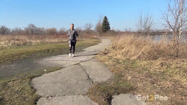 Pigtailed babe Diana Sweet walks through the overgrown gardens and finds an old abandoned building with its door open. She heads inside and squatting to pee, keeps a lookout while pissing on the tiled floor. We film her through the window for Got2Pee as this brunette pissing leaves behind a flowing pee puddle!