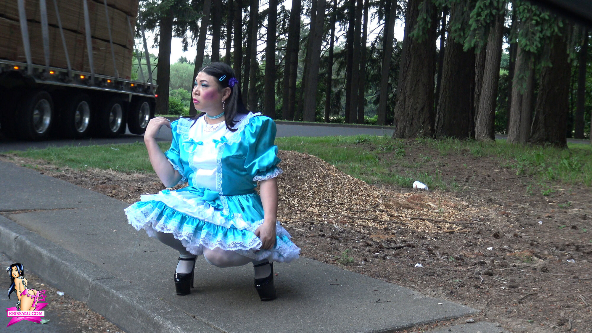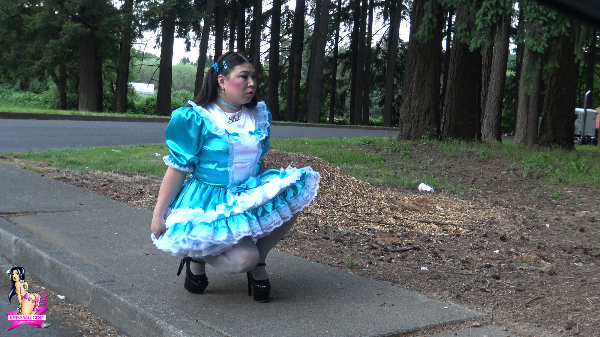It's time for a little Krissy4u - Naughty Asian Tgirl exhibitionism today! A pretty satin dress and some sexy high heels is all I need to turn some heads in this set - come watch today!