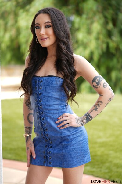 Some days are good, and some days, well, not so much. But for Sage Hunter, this has got to be one of the best days of her life. The brunette bombshell had just managed to close off a business deal with a highly valued client. She can’t help but feel ecstatic - her incredible hard work ethic has undoubtedly paid off, and the dazzling babe would surely want to celebrate her success with the closest people around her, but for now, Sage would just like a moment to herself, enjoying the cold air outside and taking a whiff of her well-earned victory.\r\n\r\nThe first thing the gorgeous babe did to commemorate her success was buy a whole new outfit, a cutesy blue one-piece that highlights her tattoos, and a pair of lovely red heels. Sage has always been a fashionista at heart, so it’s no surprise that the pieces she picked out for herself would have men appreciating her style. But out of all the clothing articles she loves to buy, a fresh pair of new heels is what makes her the happiest. Sage smiles, feeling good about her appearance, and wonders how her lover would think about her whole new wardrobe.\r\n\r\nDespite how wonderful the heels look on her, they aren’t the most comfortable pair of footwear. Sage sits down and takes them off, letting her feet breathe the cold air around her. She stretches and leans her back against the chair, hearing the birds sing, and feeling the wind sighing. Not only did the darling climb up in her career, but she also has an amazing lover to be by her side her entire life. Sage smiles, realizing that everything she wished for in life has been fulfilled. Love and success have truly been granted for the stunner.