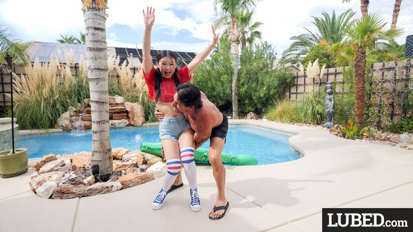 Lulu gets soaked in the pool and enjoys a big cock!