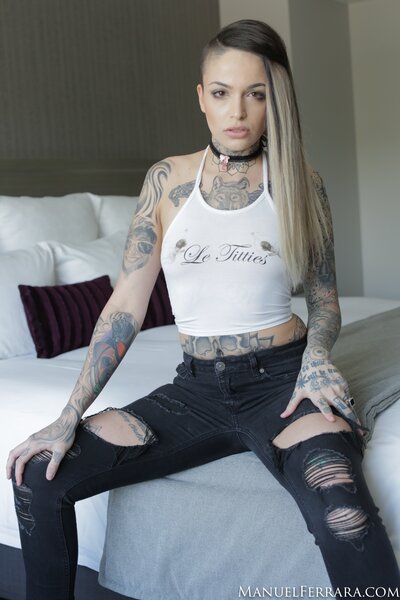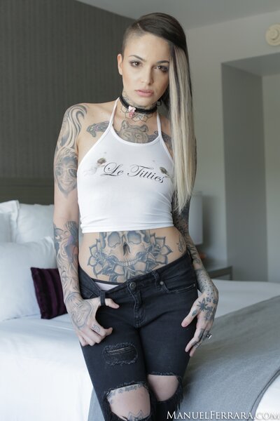 Tattooed goddess Leigh Raven meets Manuel at a hotel for a hot fuck session. Leigh's excited as she waits for her cab to take her over to meet the man himself, getting hornier and hornier with every second that goes by. There's an instant attraction from the second Manuel opens the door so he wastes no time getting her on the bed and sucking his cock. Leigh gags and slobbers all over that dick as she tries fit the whole thing down her throat. What follows can only be described as an intense all out fuckfest, you've gotta see it for yourself.