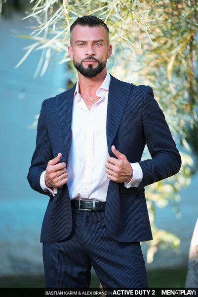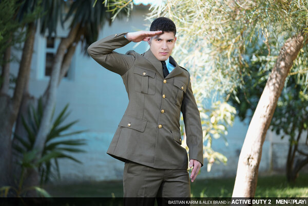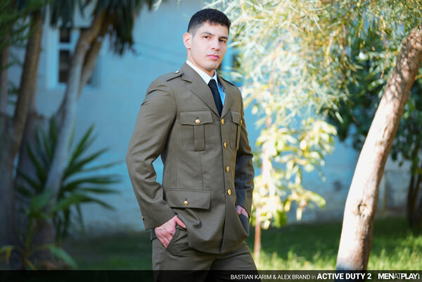 Private First Class Bastian Karim is on a weekend pass during the Veterans Day holiday and makes a surprise visit. As he pulls up into the garage, he phones his step-dad, who lets Bastian know that his favorite step-brother (Alex Brand) is home alone for a few hours. When Bastian finds Alex in the back smoking a square, he rushes to him and says, "Surprise, asshole… You gonna keep staring or kiss me?" The two step-brothers have missed each other since Bastian is on active duty and away for months at a time. What a perfect time to reconnect and play! No Mission Too Difficult, No Sacrifice Too Great, Brotherly Duties First. To those in uniform serving today and those who have served in the past, we thank you for your commitment.
