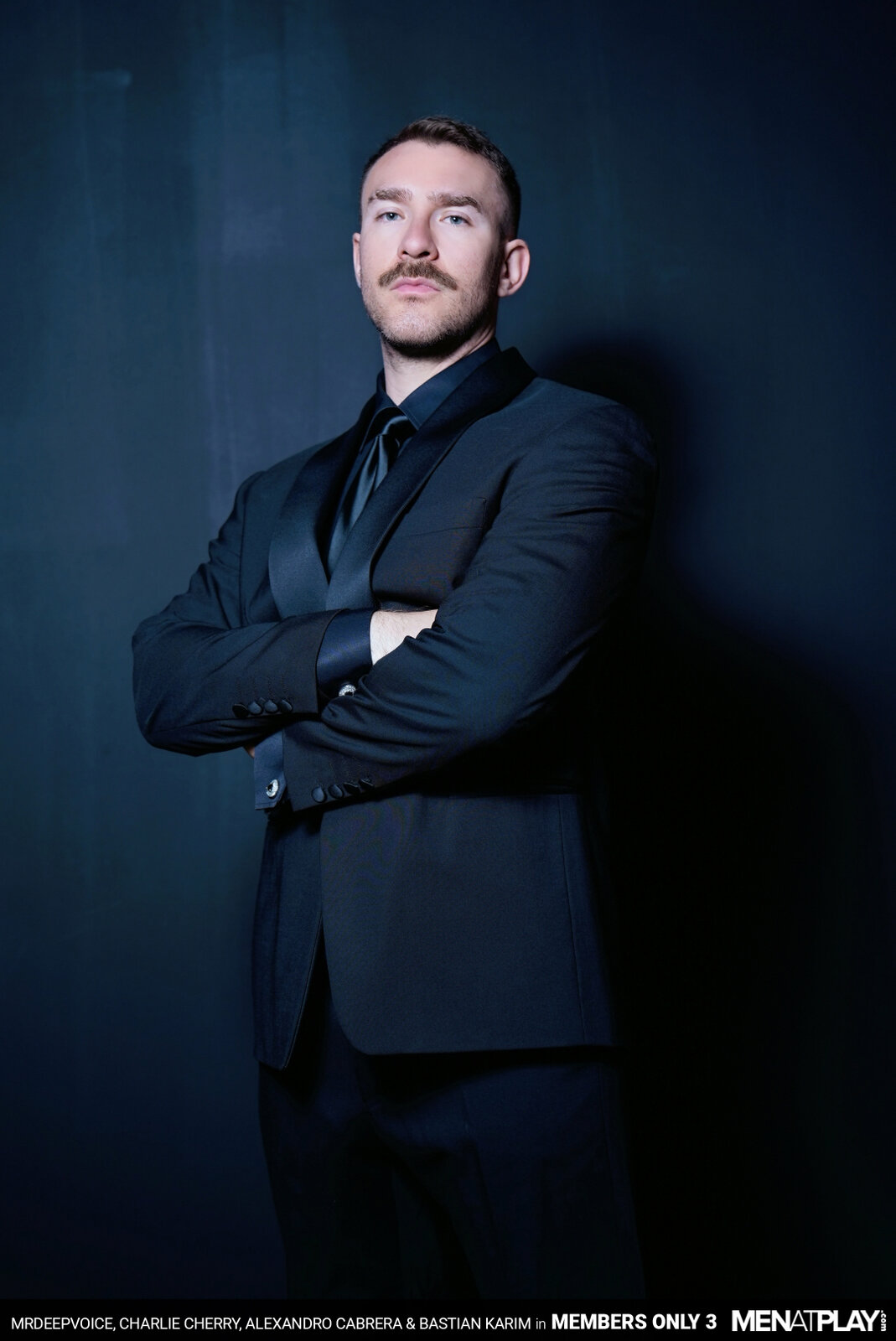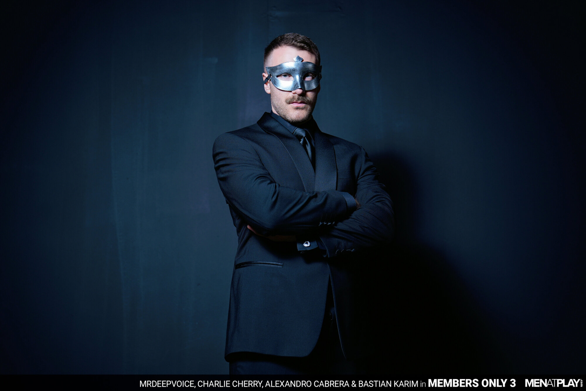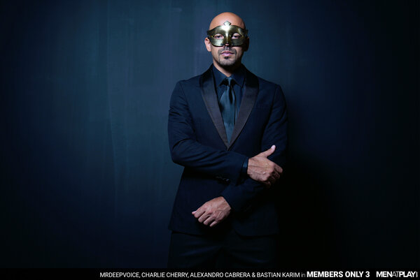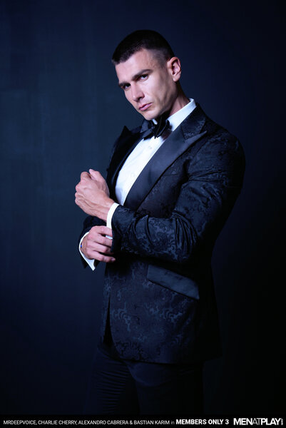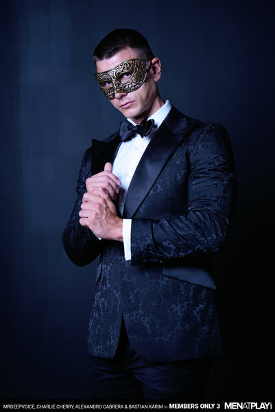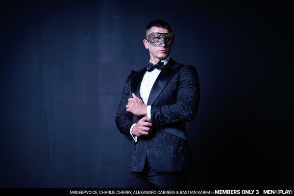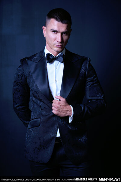 The Menatplay members-only group and underground secret society of high-powered men is having its last gathering of the year. On the schedule - to have their way with the young, submissive bottom, Bastian Karim. Once granted access to the private event behind closed doors, desire is no longer restrained, fantasies breathe, fetishes awaken, and a single vessel becomes the altar of their release — a brotherhood bound not by words but by what they dare to unleash. Hosting today's seance is member 001, MrDeepVoice, the insatiable, muscular British stud who performs with the other members (Charlie Cherry, MrDeepVoice, Alexandro Cabrera) in freshly pressed suits and elegant evening attire. MrDeepVoice introduces the tight, submissive Bastian in his white bow tie, black briefs, and sheer socks to Charlie Cherry, whose XXL uncut cock is ready for servicing. Meanwhile, Alexandro eats and fingers his asshole. Then, it's MrDeepVoice's turn to have his cock serviced while the Cuban stud, Mr. Cabrera, shoves his 8.7" monster cock inside the bottom's loosened hole, followed by Charlie. After the two minority members have had their turns, MrDeepVoice calls for Bastian to sit on his cock and fuck himself in the cowboy position. But the evening is not yet over, and Alexandro and Charlie have another turn with the young Colombian bottom. When the men have had their fill of mouth and ass, they have Bastian lie on the armless chaise chair, surrounding him in a circle jerk, stroking their big cocks and take turns cumming on Bastian's face.