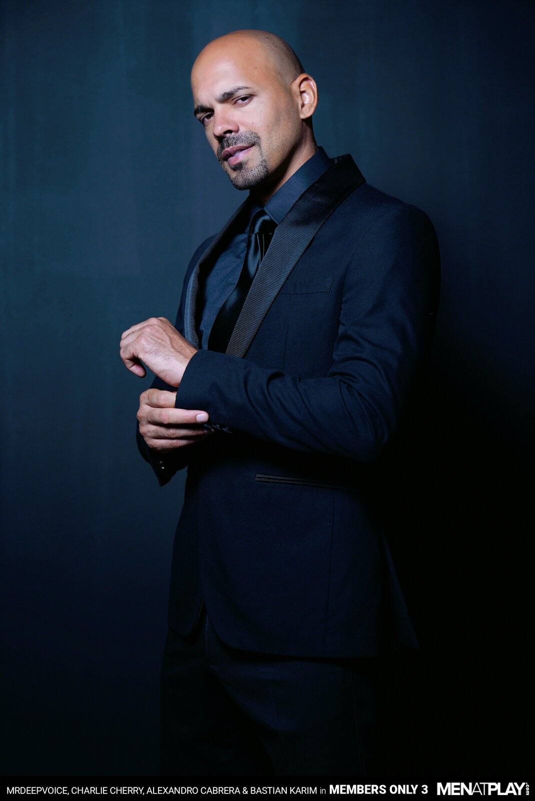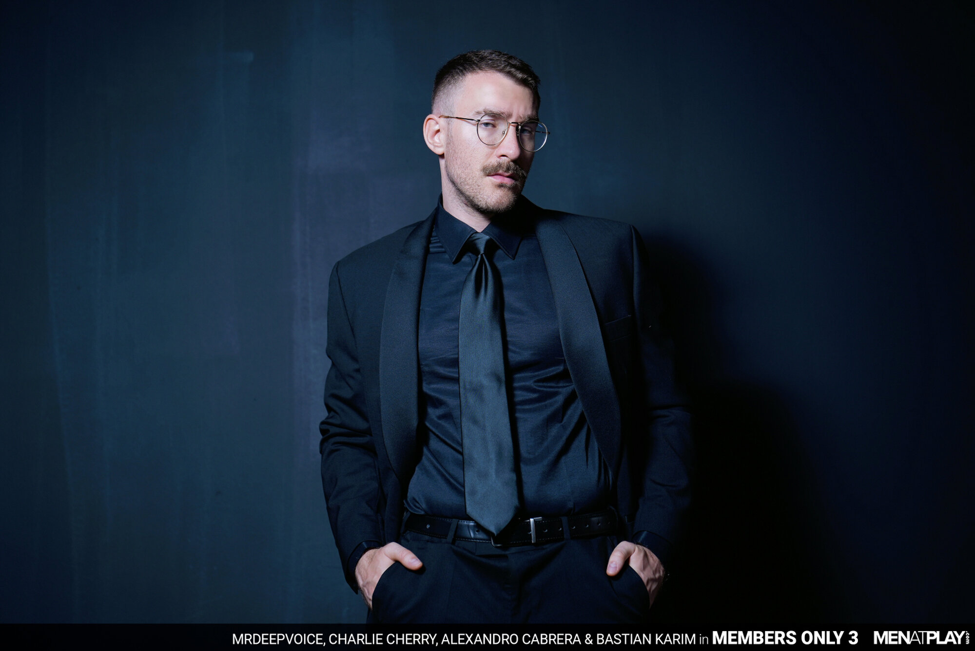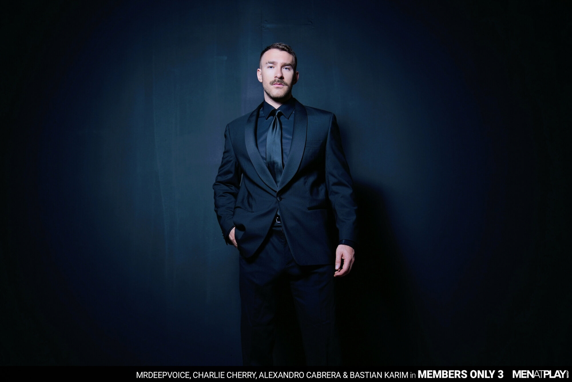 The Menatplay members-only group and underground secret society of high-powered men is having its last gathering of the year. On the schedule - to have their way with the young, submissive bottom, Bastian Karim. Once granted access to the private event behind closed doors, desire is no longer restrained, fantasies breathe, fetishes awaken, and a single vessel becomes the altar of their release — a brotherhood bound not by words but by what they dare to unleash. Hosting today's seance is member 001, MrDeepVoice, the insatiable, muscular British stud who performs with the other members (Charlie Cherry, MrDeepVoice, Alexandro Cabrera) in freshly pressed suits and elegant evening attire. MrDeepVoice introduces the tight, submissive Bastian in his white bow tie, black briefs, and sheer socks to Charlie Cherry, whose XXL uncut cock is ready for servicing. Meanwhile, Alexandro eats and fingers his asshole. Then, it's MrDeepVoice's turn to have his cock serviced while the Cuban stud, Mr. Cabrera, shoves his 8.7" monster cock inside the bottom's loosened hole, followed by Charlie. After the two minority members have had their turns, MrDeepVoice calls for Bastian to sit on his cock and fuck himself in the cowboy position. But the evening is not yet over, and Alexandro and Charlie have another turn with the young Colombian bottom. When the men have had their fill of mouth and ass, they have Bastian lie on the armless chaise chair, surrounding him in a circle jerk, stroking their big cocks and take turns cumming on Bastian's face.