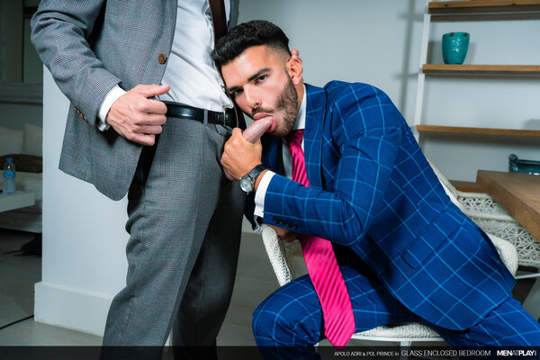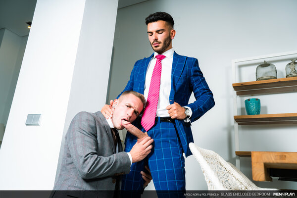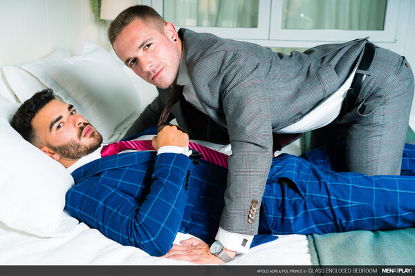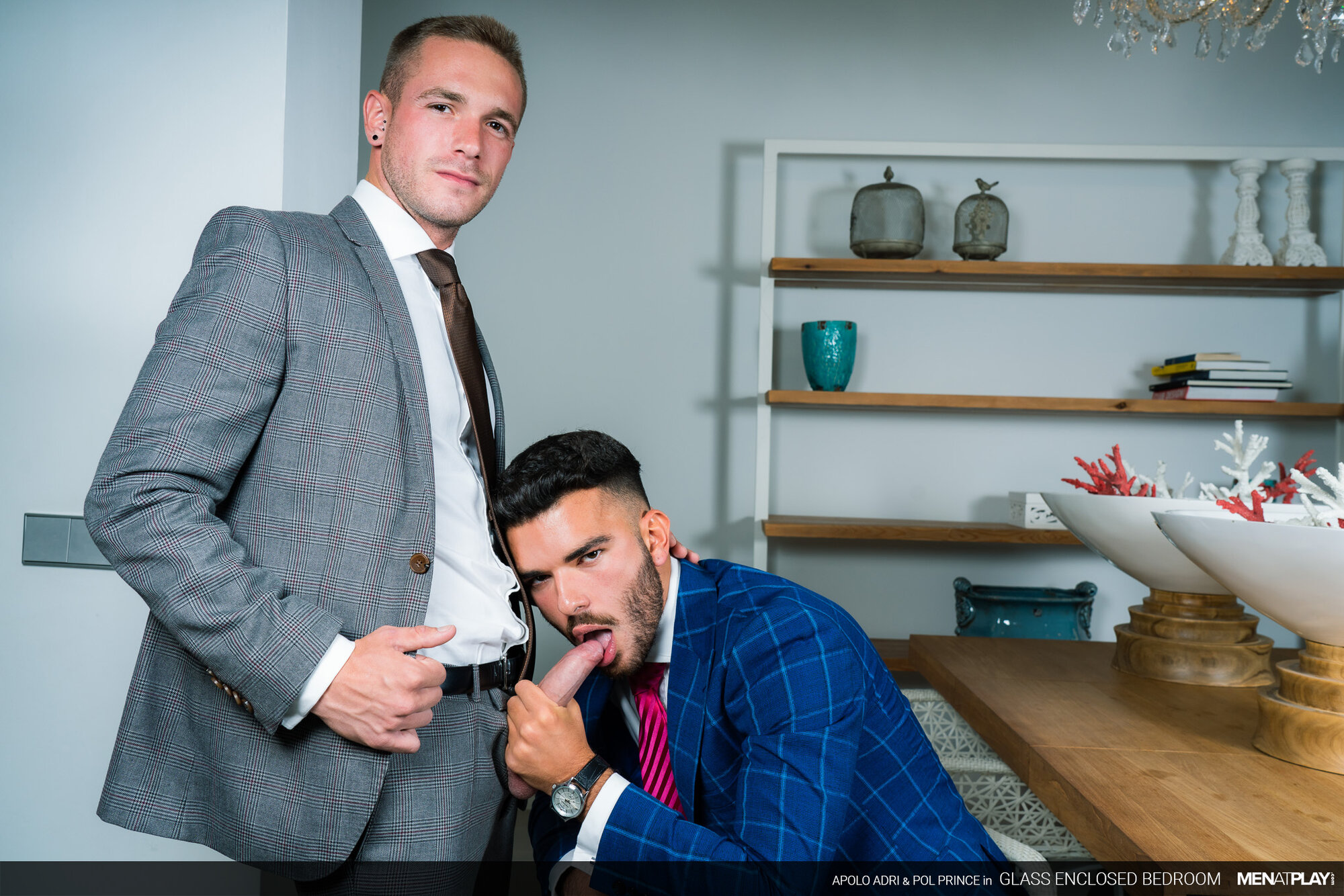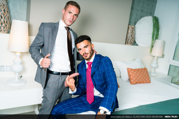 The young, driven Pol Prince sells luxury homes for and to top clients. He has invited his friend Apolo Adri, an interior designer, to participate in a new project for a client with punctilious taste. However, when Apolo shows Pol the updated glass-enclosed main bedroom, he worries that it's all wrong. Don't get it misconstrued - a glass bedroom would be perfect for the right person; especially a naughty exhibitionist. But, the client was specific regarding his desire for a private space. Fortunately, Apolo knows that the sexy Mr. Prince can have quite the influence over people; oftentimes changing their minds in his favor. What better way to demonstrate that this bedroom is perfect just the way it is than by playing in it.