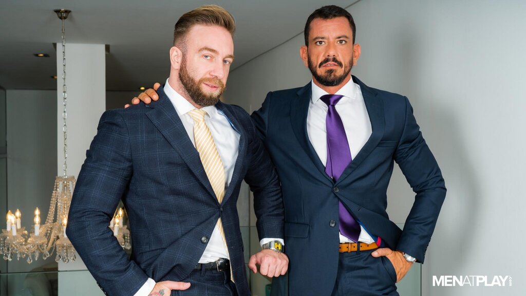 Since 2004, Menatplay has been the original home of the suited stud! Do you think business and pleasure don't mix? We're sure you will change your mind when you enter the Menatplay offices. The sexiest, suited men from across the globe come together to turn your executive fantasies into a reality. Passionate suit sex play sessions in and out of the boardroom. Watch Men at Play - suited studs take it like men in the best office gay porn videos and sex in suits porn. Are You Ready to Play?