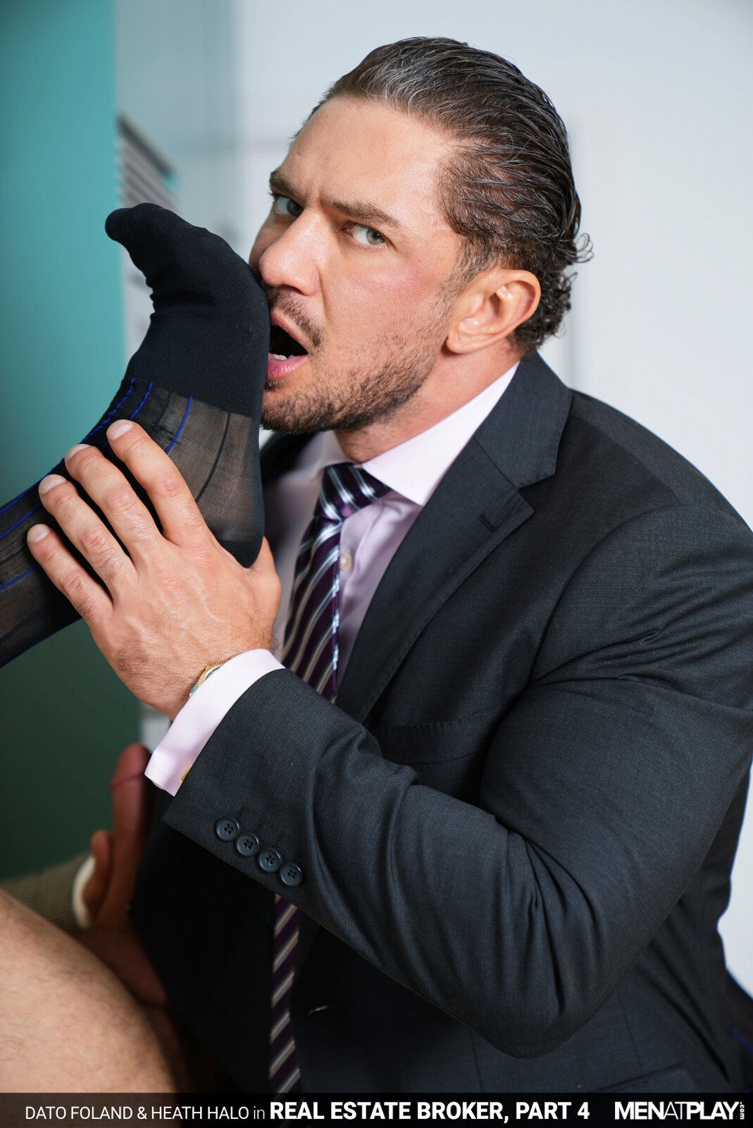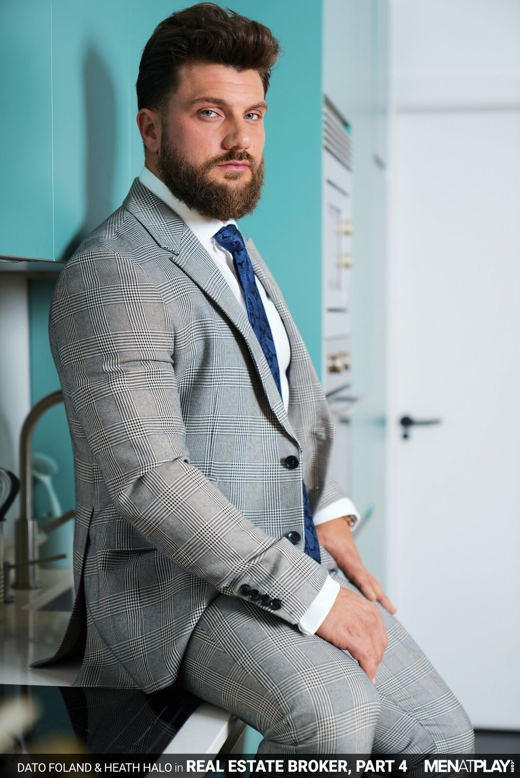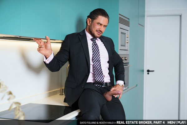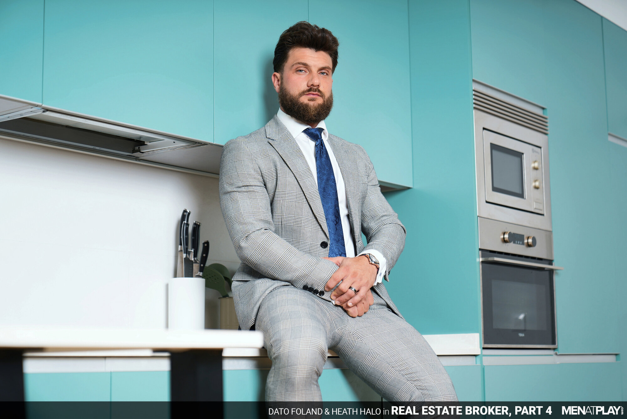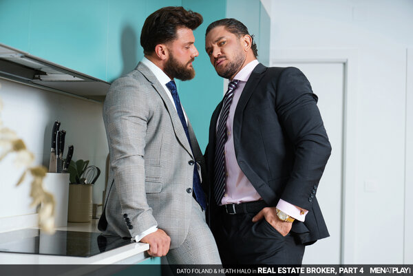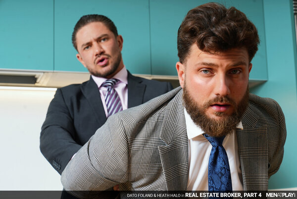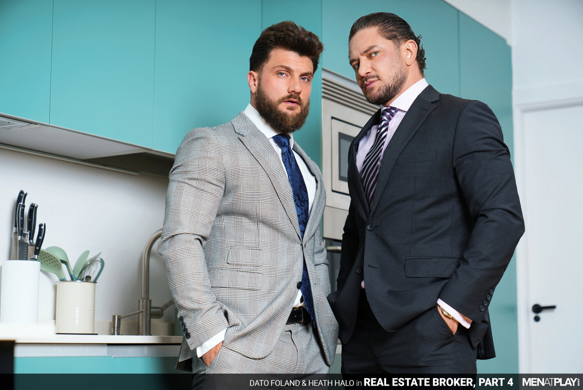 Even though it's currently a seller's market, Real Estate agent Dato Foland has just closed on a hot new property for his client and buyer, Heath Halo. As is customary, they are doing a final walk-through, where Heath expresses his gratitude for Dato's service. The homeowner is ready to enjoy his new pad right away and invites his sexy agent to a private housewarming party right now. Dato is confident he understands, but still asks Heath what he has in mind. Heath slowly approaches Dato, grabs his crotch, and tells him.. "I reckon I can start here." Passionate kissing leads to mutual cock sucking, and Dato eating Heath's hairy hole until he pulls his legs over his shoulders and fucks his client raw. The fantastic feeling of having Dato's big, uncut cock inside him is too much to resist, and Heath cums all over his floor while getting fucked, and afterwards, Dato pulls out and cums all over Heath's bearded face. Closing Deals, Opening Doors (and Holes).