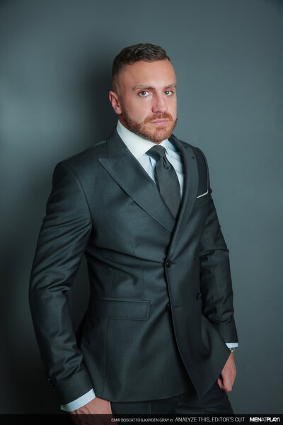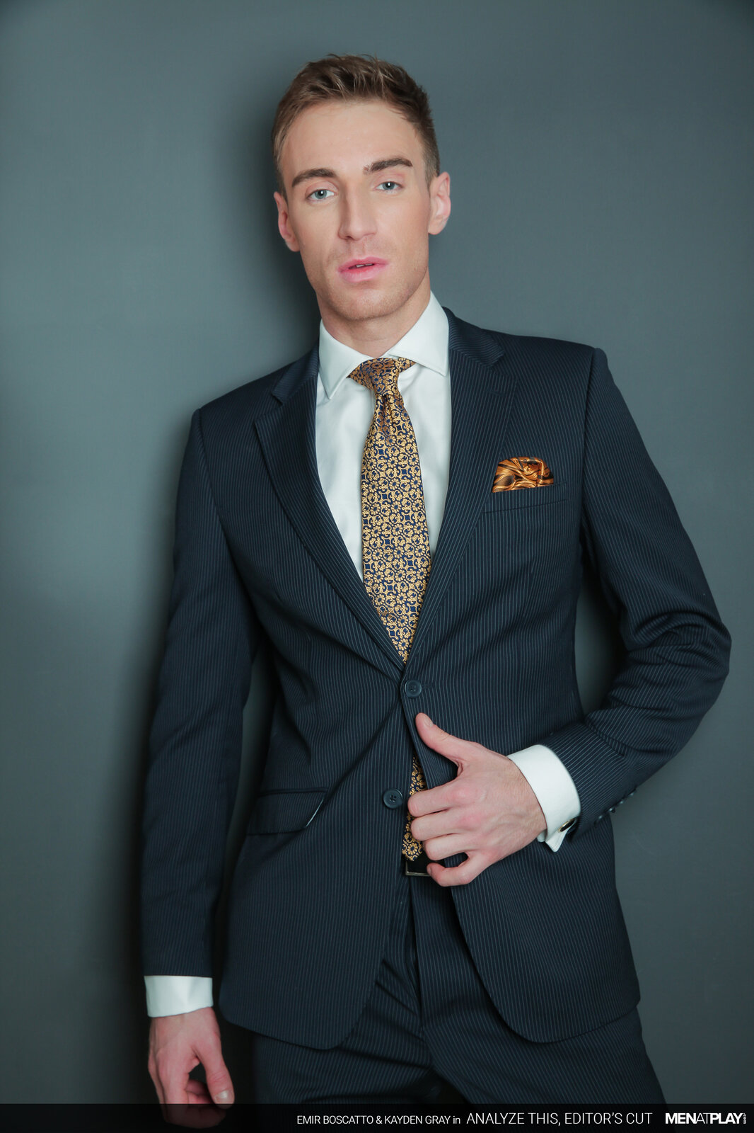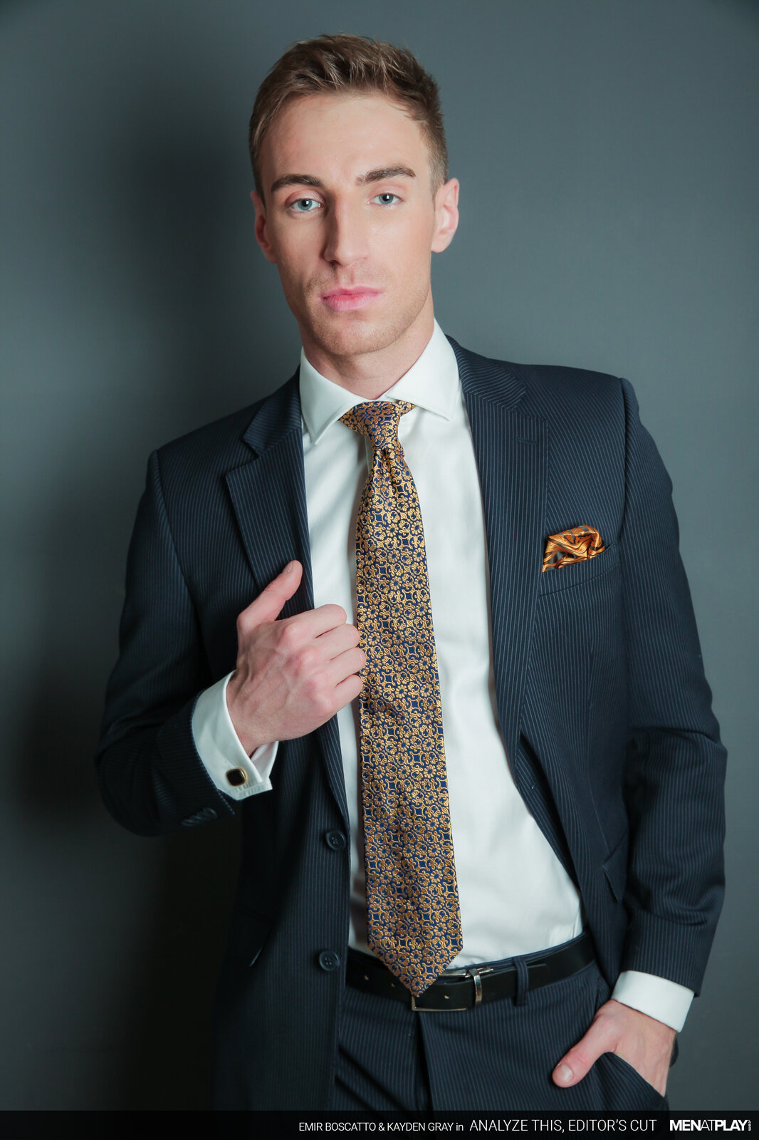 Emir Boscatto and Kayden Gray perform in one of MAP's top favorited suited movies in this Bonus Editor's Cut release of "Analyze This." Young job candidate Kayden Gray turns up for an interview and is confronted by domineering executive Emir Boscatto, whose silence and piercing gaze are unnerving. When Emir turns on a video camera to record the meeting, the awkward atmosphere steps up a notch. But, the moment Emir begins to feel Kayden's cock through his fly, it's Kayden who takes charge. Emir takes Kayden's huge cock to the back of his throat before getting his hole stretched, all while they both watch their play session being captured on camera for future analysis.