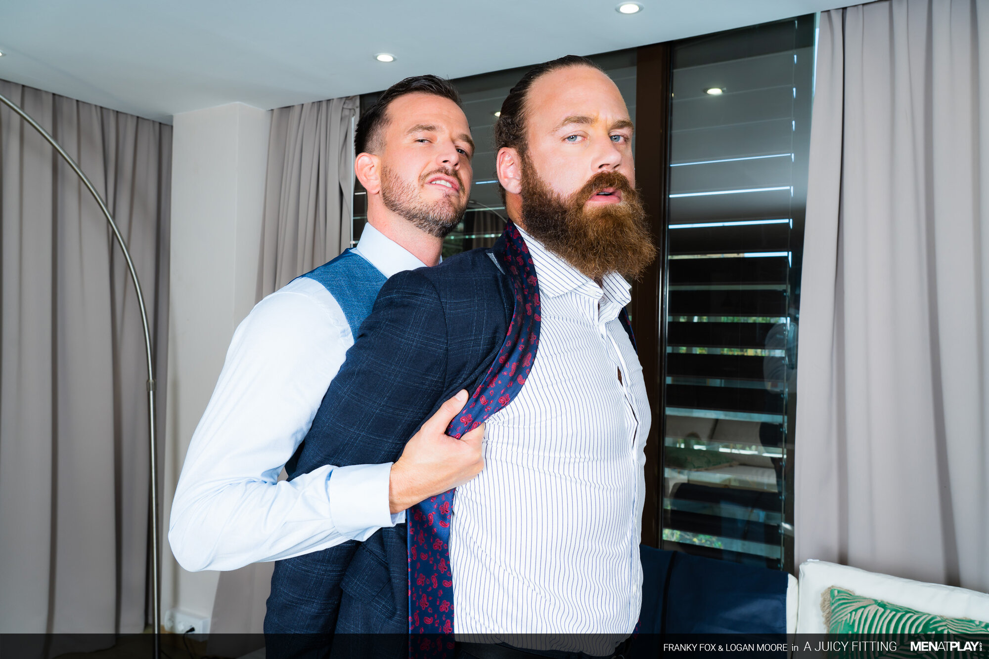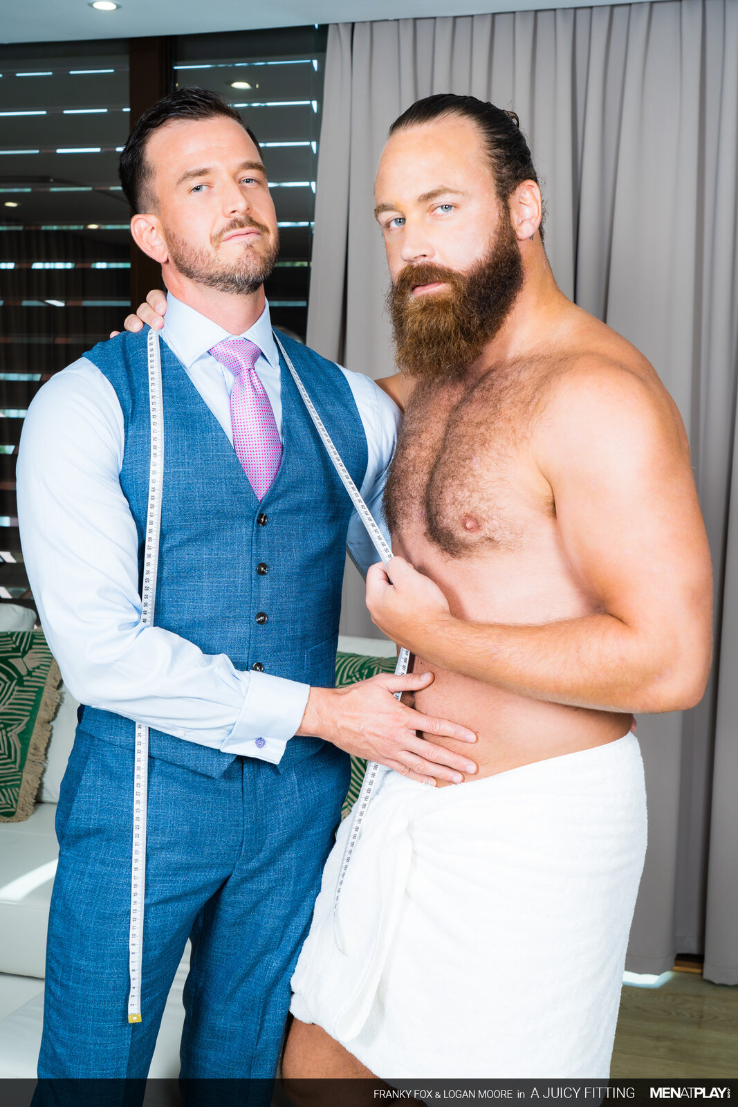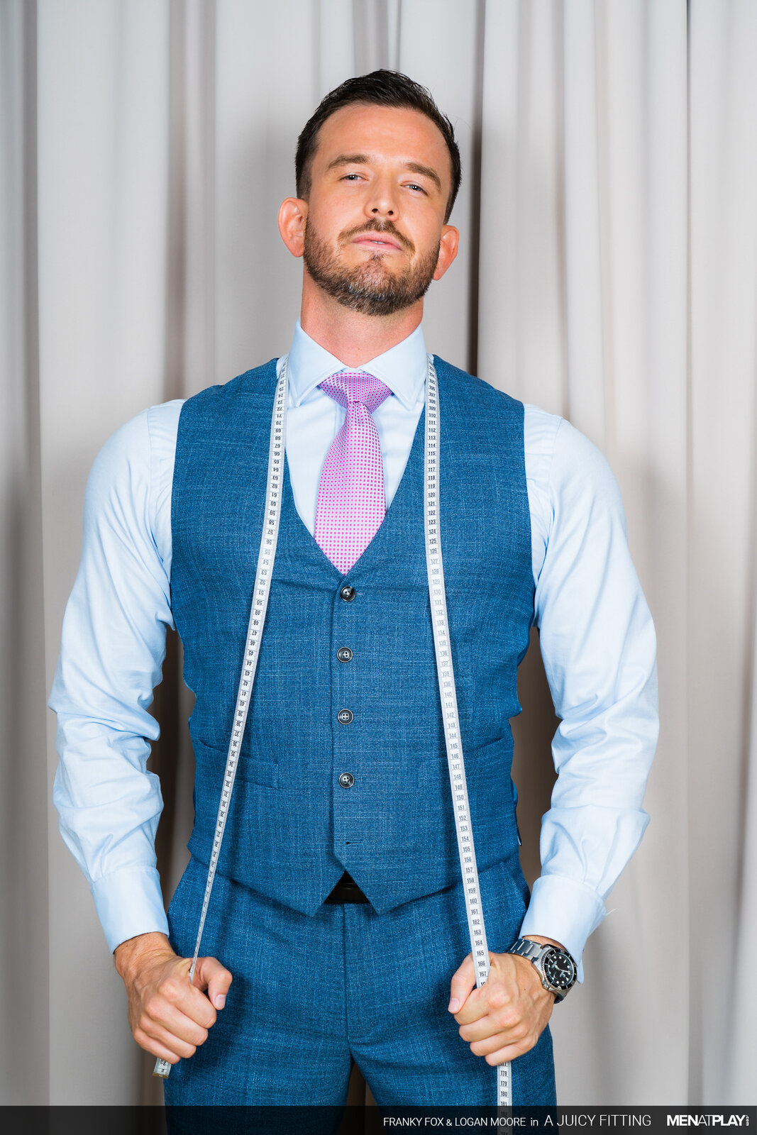 Logan Moore is getting married and his tailor, Franky Fox, has made a house call for a final fitting. Not expecting Franky until tomorrow, Logan receives him with only a towel wrapped around his waist. While double-checking the measurements, Franky can't help but enjoy the views - especially Logan's massive butt. When Logan asks Franky how he looks, he's honest - great, tempting, appealing, seductive, and finally… sexy! Who cares if the suit fits - this situation is tailor-made for one final debaucherous flip-flop fuck play session before Logan’s "I Do’s".