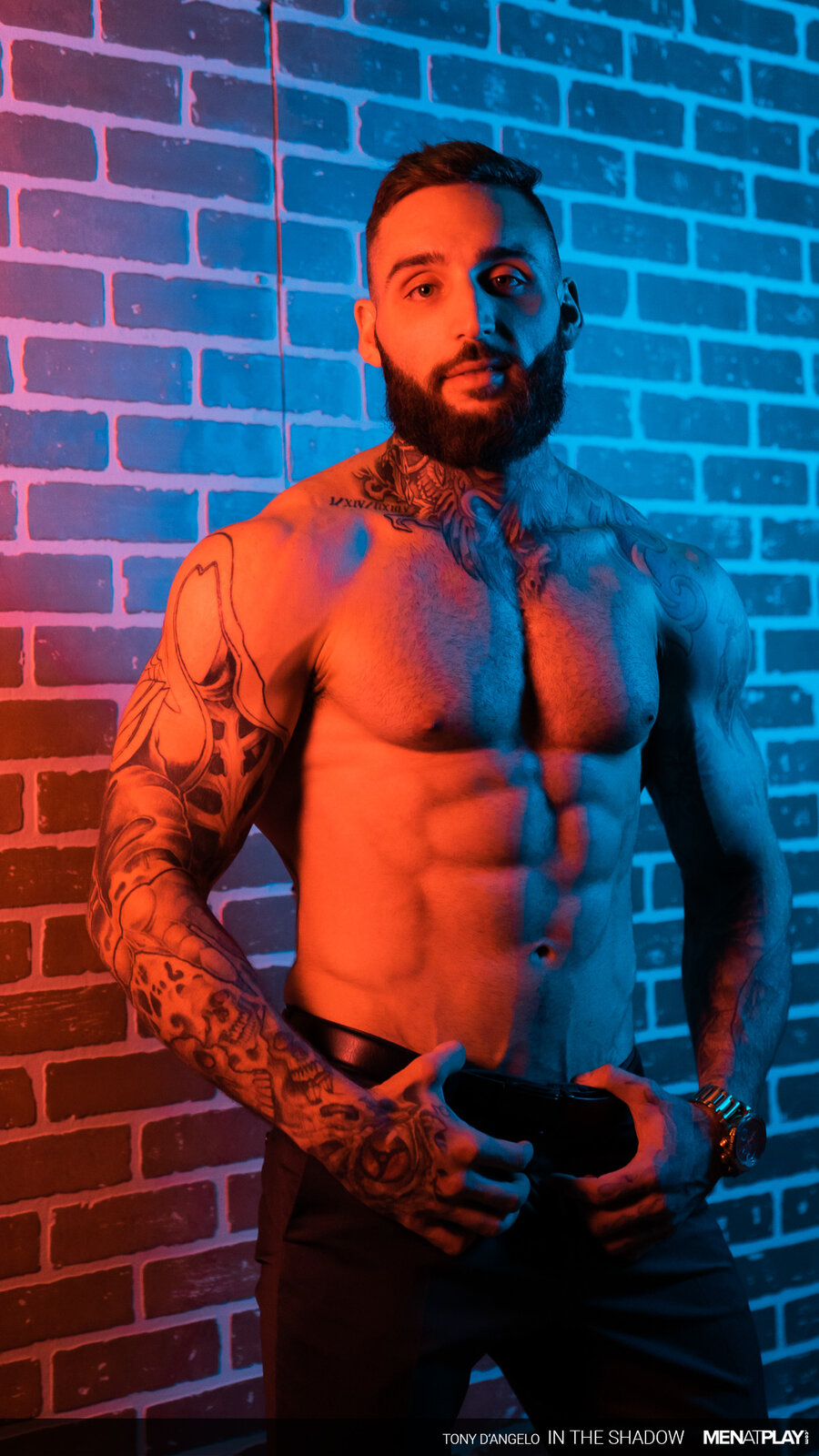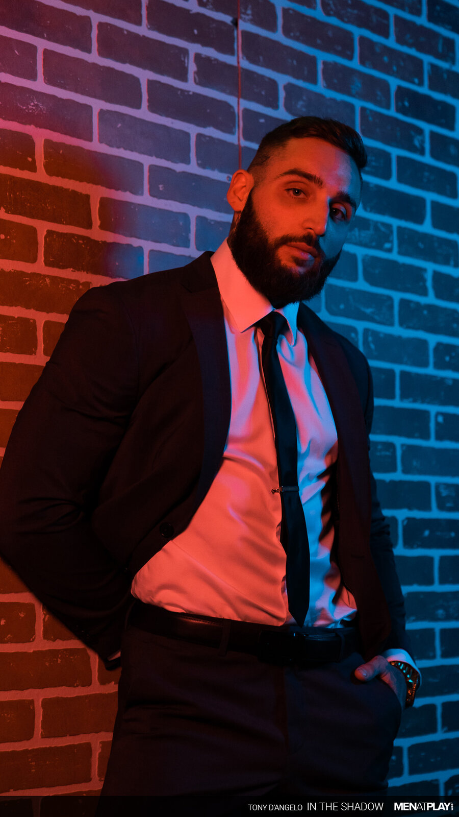 This Bonus Co-Production is brought to you in conjunction with our friends at MASQULIN starring Tony D'Angelo and Rocky Vallarta. Private Chauffeur, Tony D'Angelo, has some time before his next service call and can't shake the deep desire of being with a man. The muscular, suited stud makes his way to an underground private sex club with glory holes and hungry mouths to feed in the shadows of debauchery. Tony carefully removes his shirt and jacket - he doesn't want them wrinkled before returning to work. He sticks his cock inside a hole; where on the other side, a mouth awaits. As Tony gets sucked, the blindfolded Rocky Vallarta says he will do anything he says. The dominant Tony enjoys the acquiescent wet mouth - as his cock and balls get sucked. After cumming, he swells with even more desire and demands for more; pushing the subservient stud into a wall, and bending him over. Is Tony ready to further satisfy his deepest carnal desires?