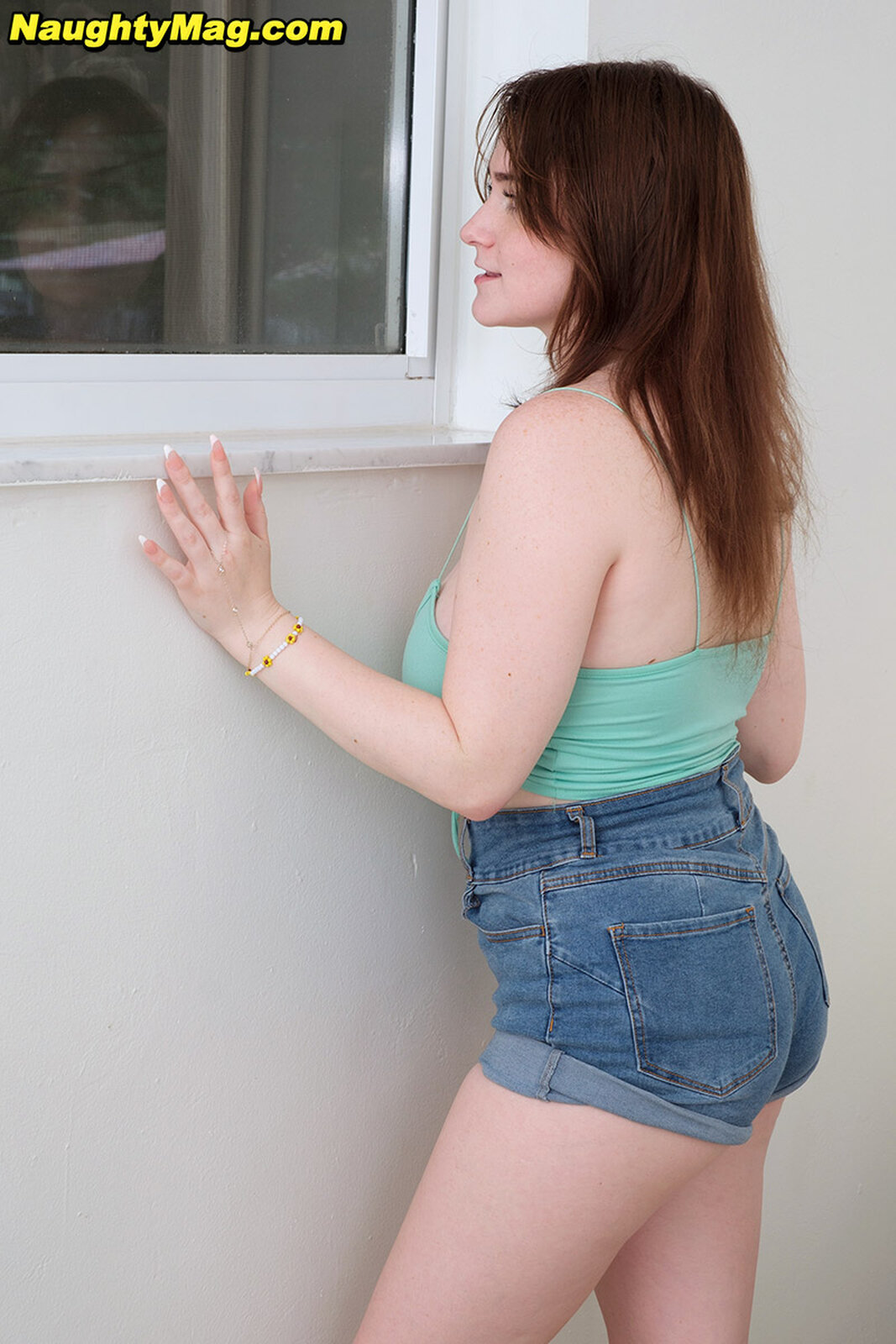 Meet Lilibet Saunders, a brand-new and curvy 18-year-old girl. She's flexible, and she shows you that by stripping off her jean shorts and tight top, pulling down her (crotchless) pink panties, wrapping her legs behind her head and fingering her tight, young cunt. "My boobs are definitely my best asset," she told us. "I have big boobs. They're annoying sometimes, like when I have to run, but they look really nice. Guys love them, too. I enjoy a nice, hard squeeze on them when I'm fucking. I've been wanting to get nipple clamps, too. I have naturally pale nips, but they get all rosy and pink when they're pinched and get hard. I think it looks hot." We do, too, Lilibet.