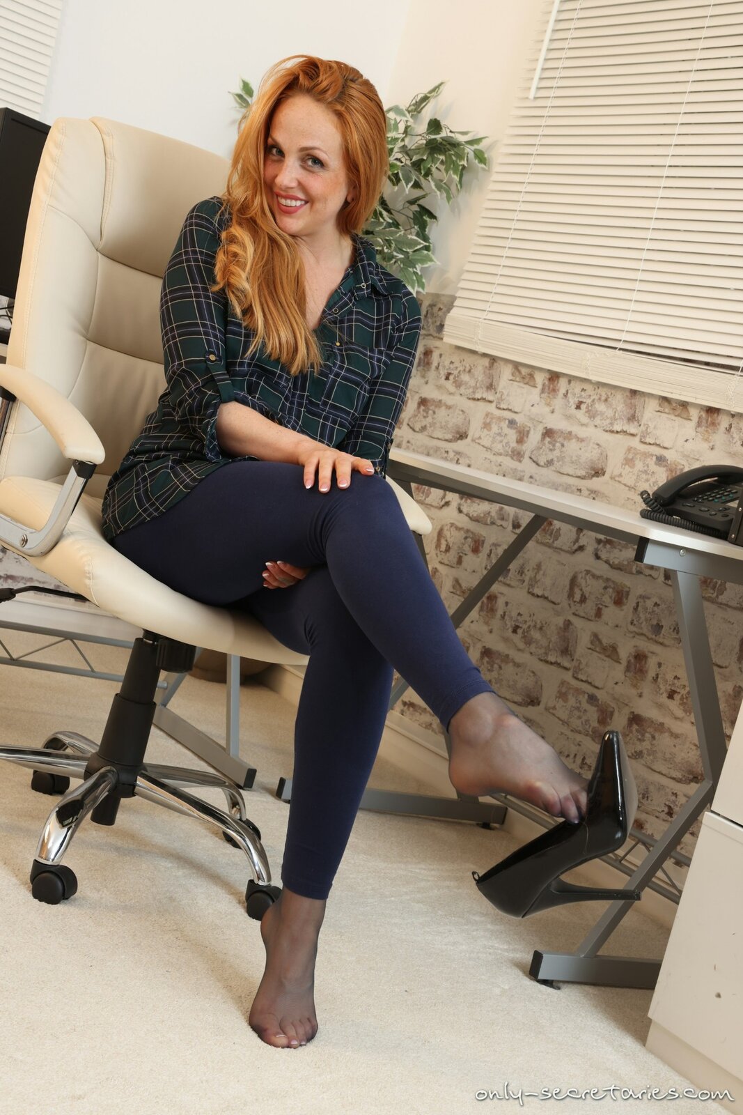 Kara Carter from Only Secretaries Kara Carter from Only Secretaries wearing leggings and high heels over sheer stockings 130 images